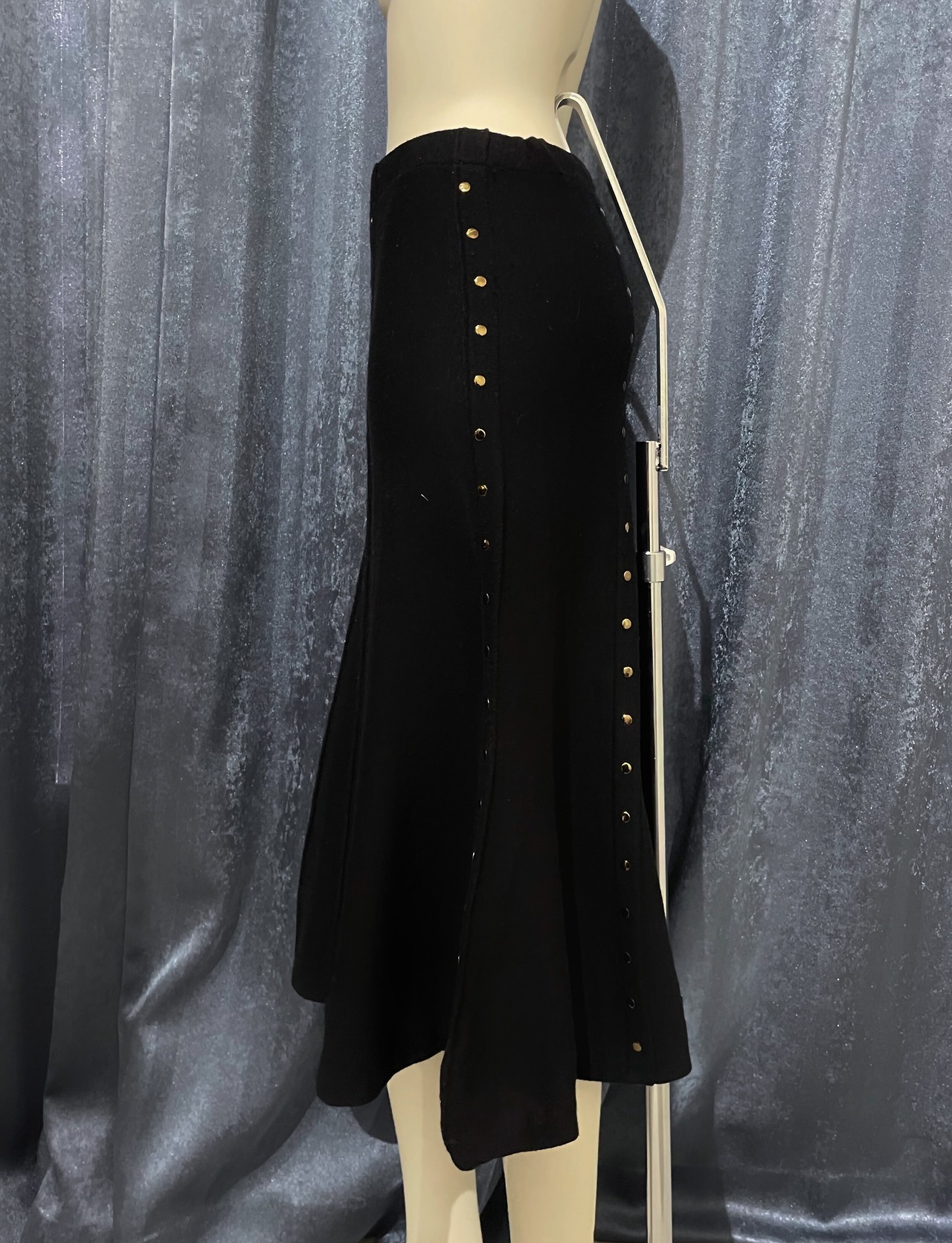 Gold Studded Black Knit Flare Skirt