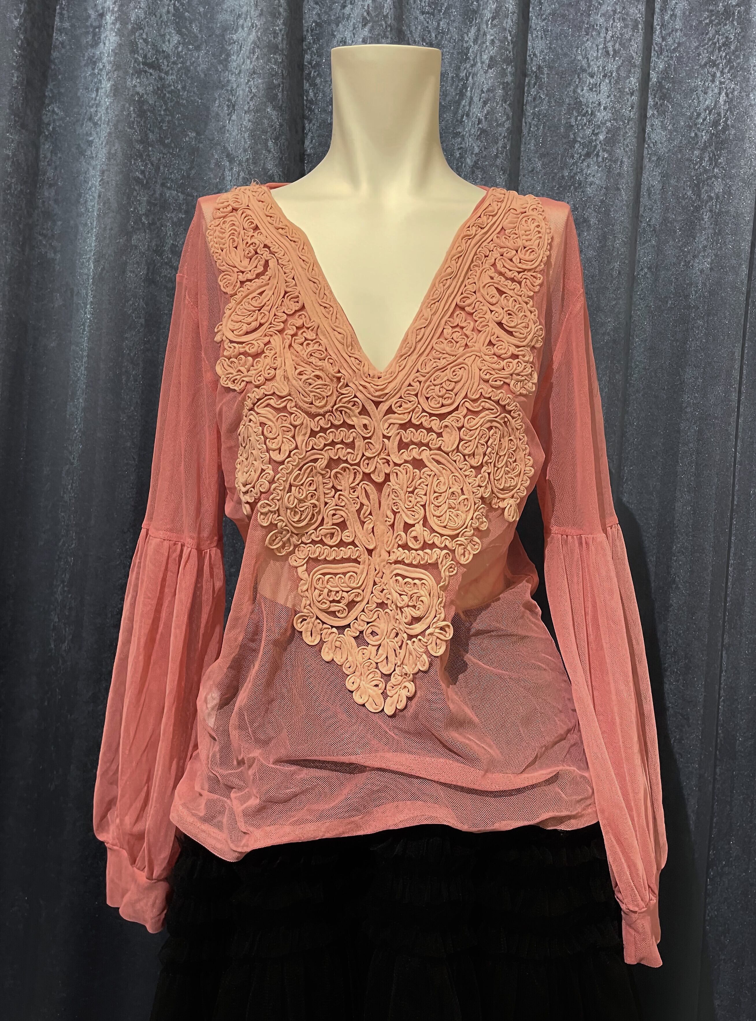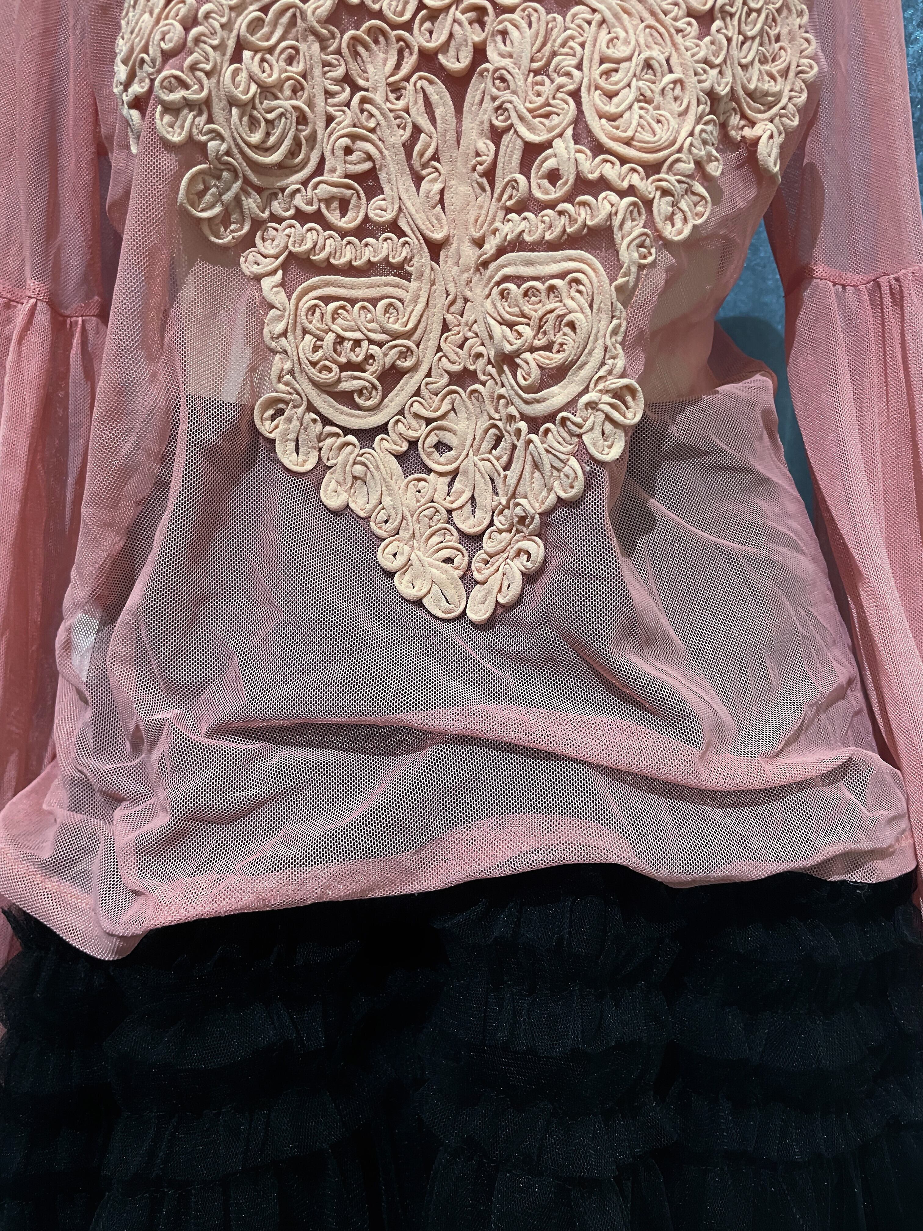 Pink Sheer Embroidery Long Tee