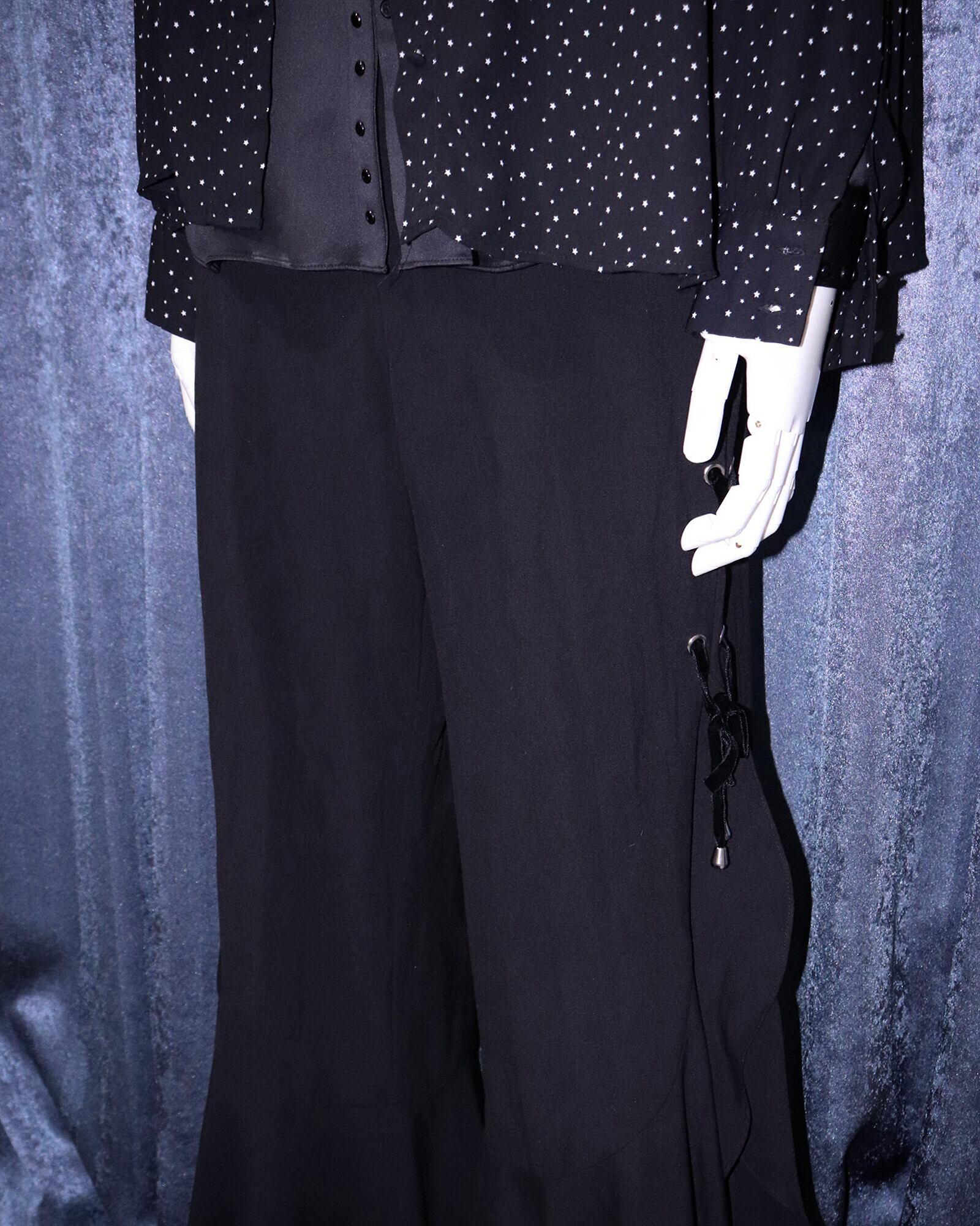 Side Slits Lace-Up Black Flare Pants