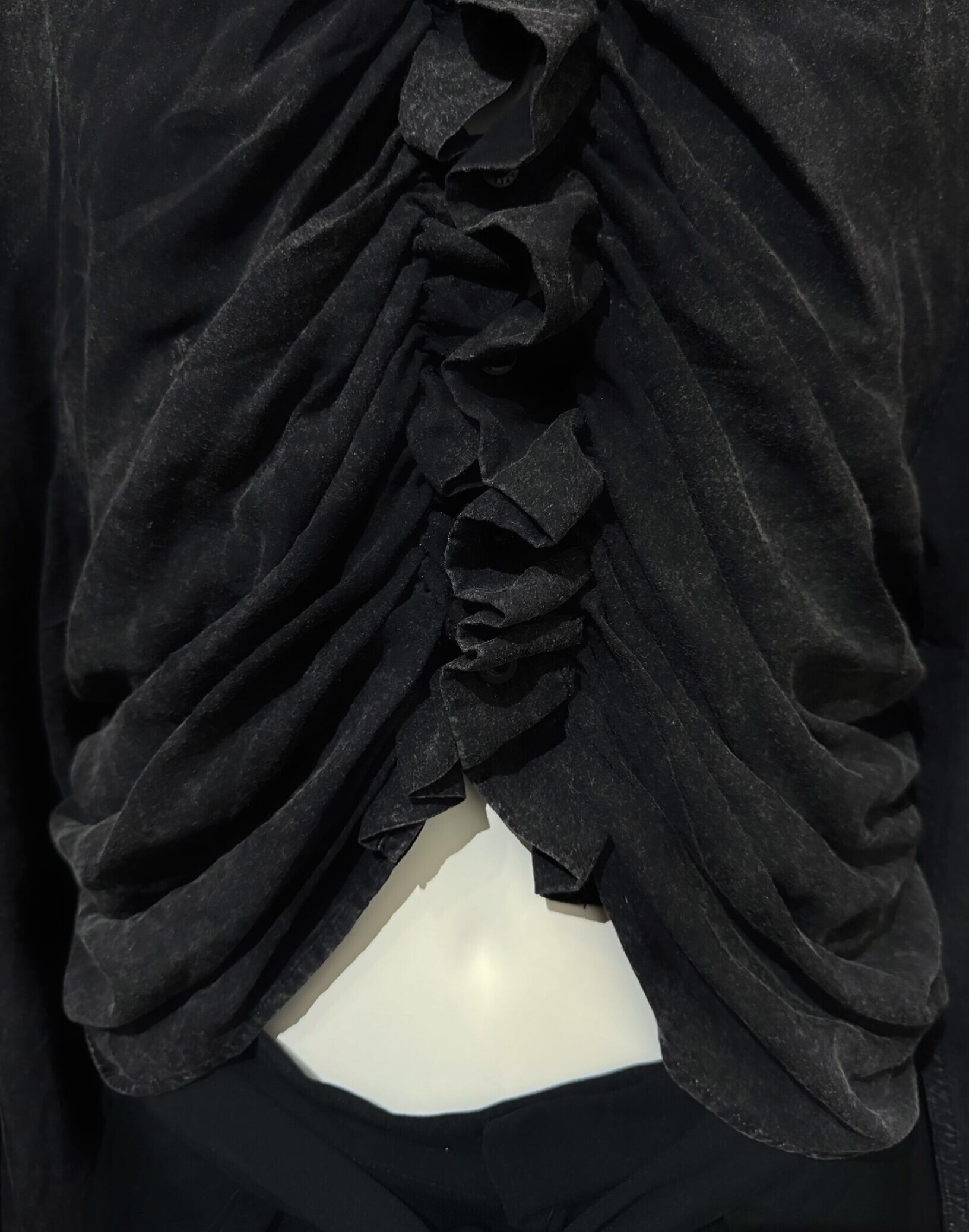 Gathered Button Long Back Shirt