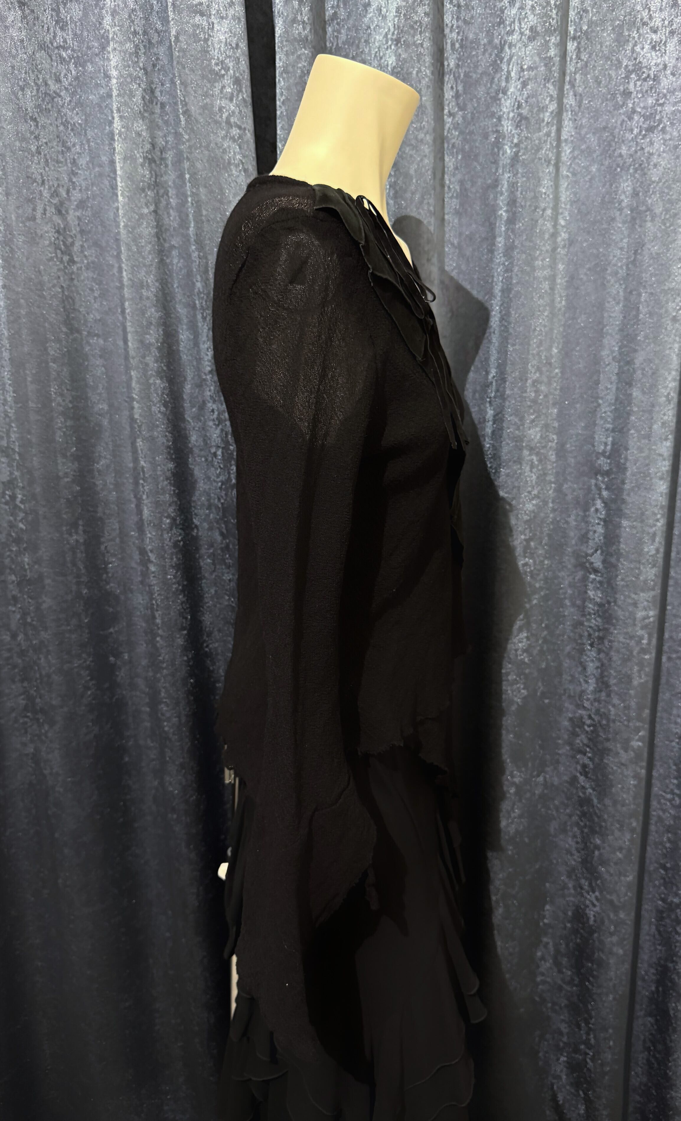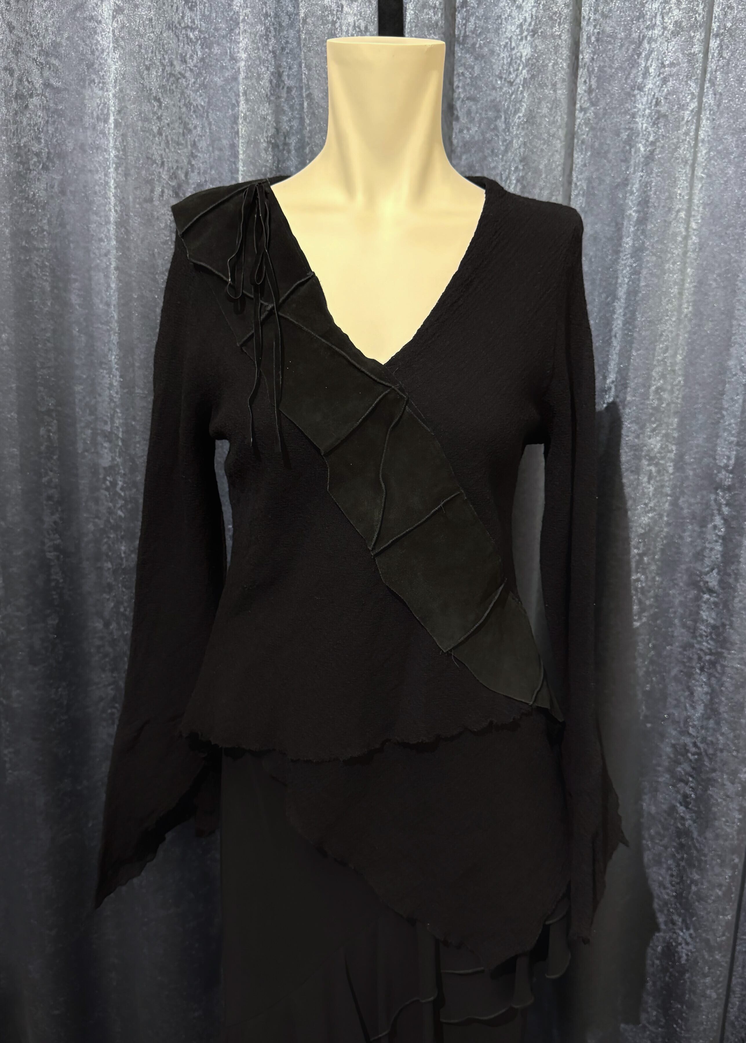 [Paris] Sheer Asymmetric Layered Hem Leather Ribbon Tee