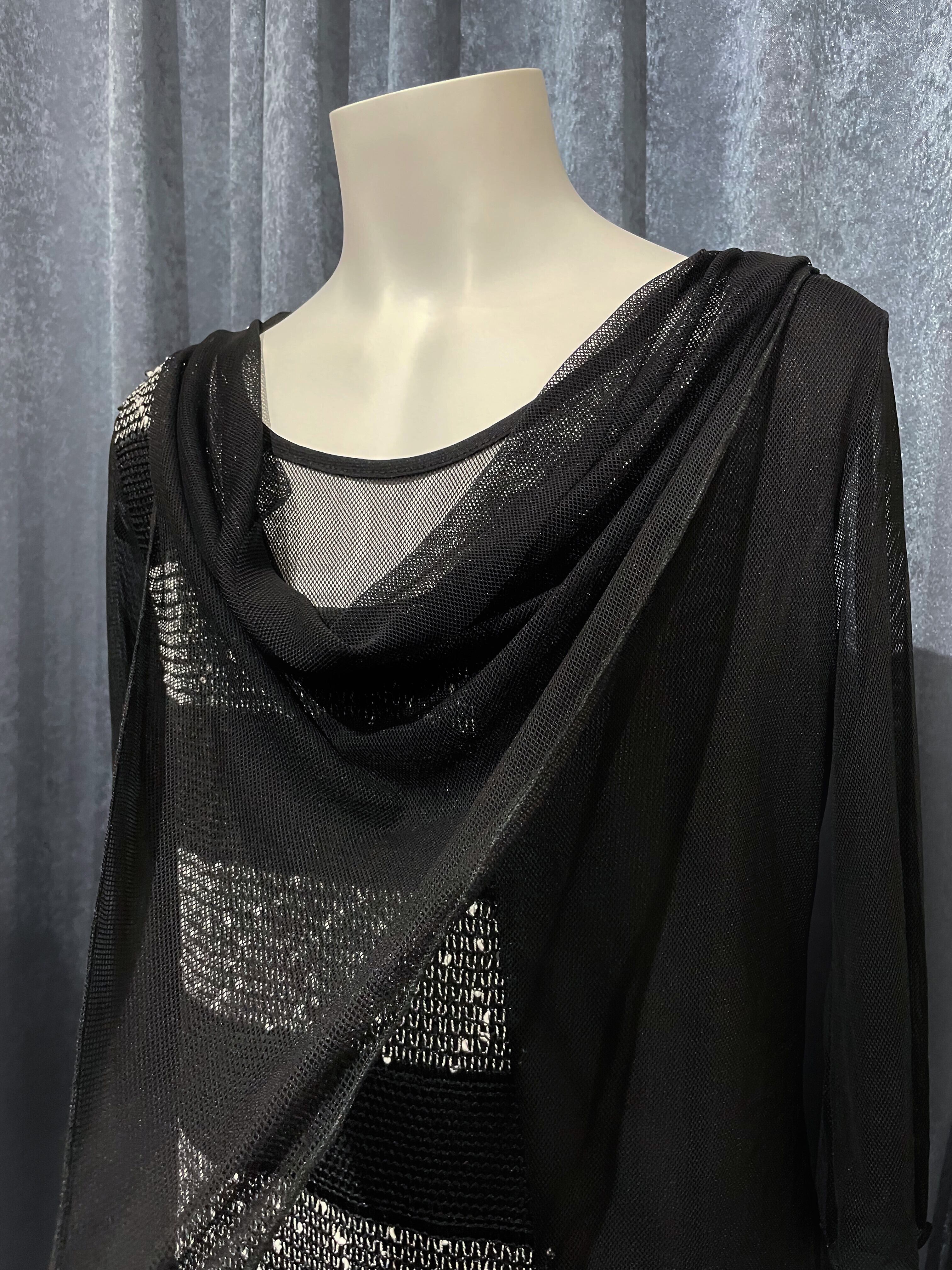 Layered Drape Mesh Border Sleeve Tee