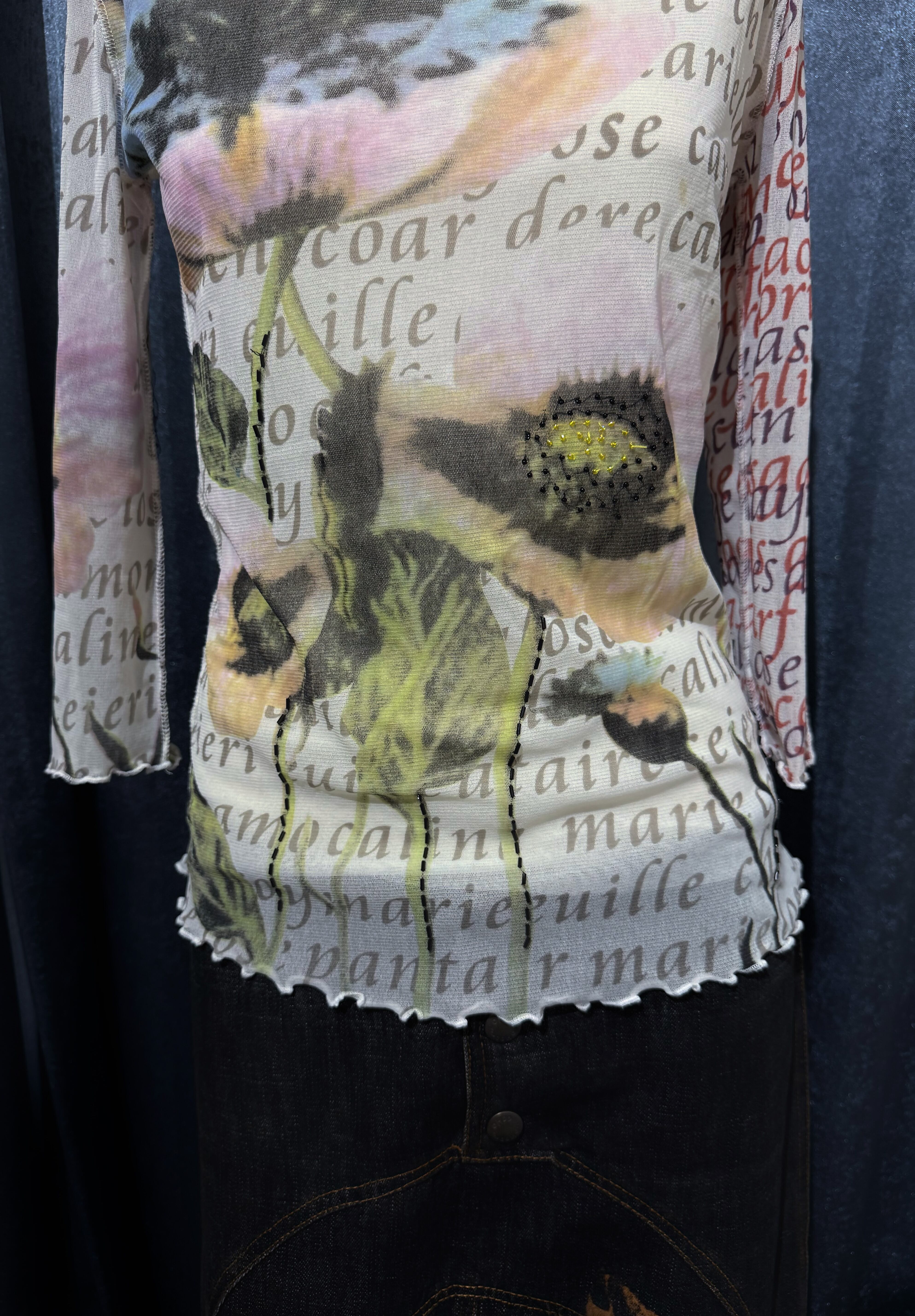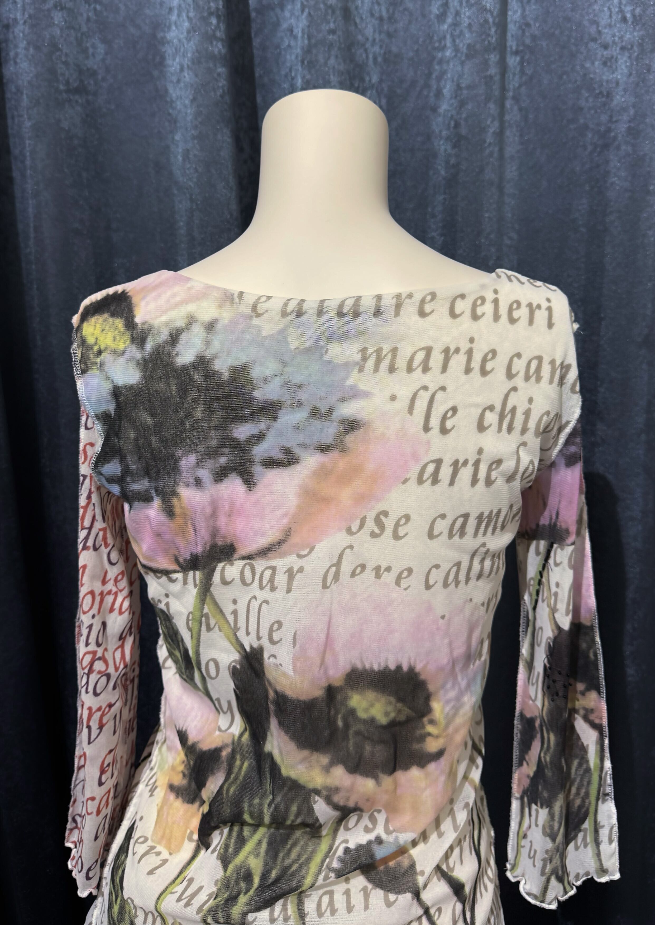 Sheer Artistic Floral Print Mellow Sleeve Top