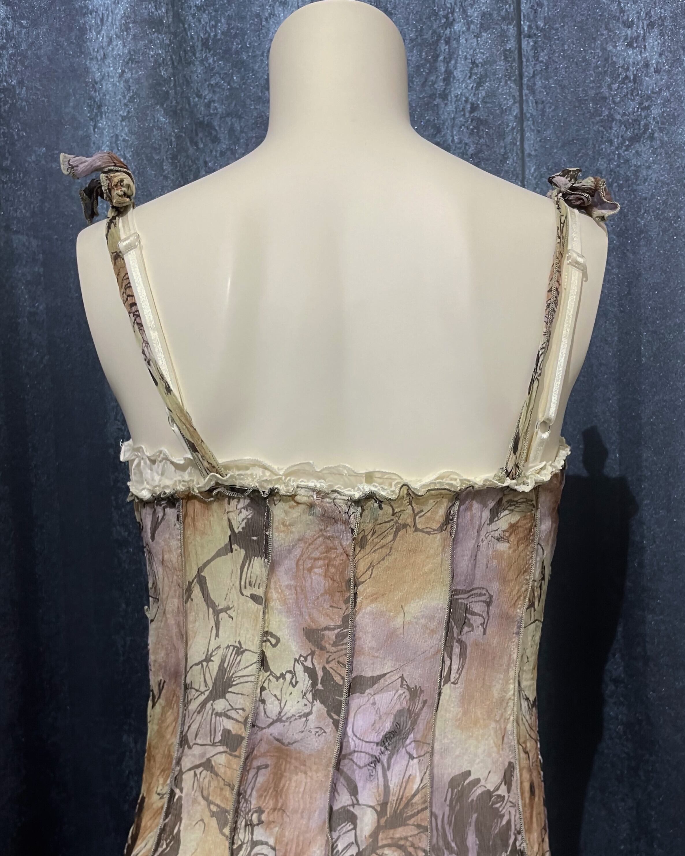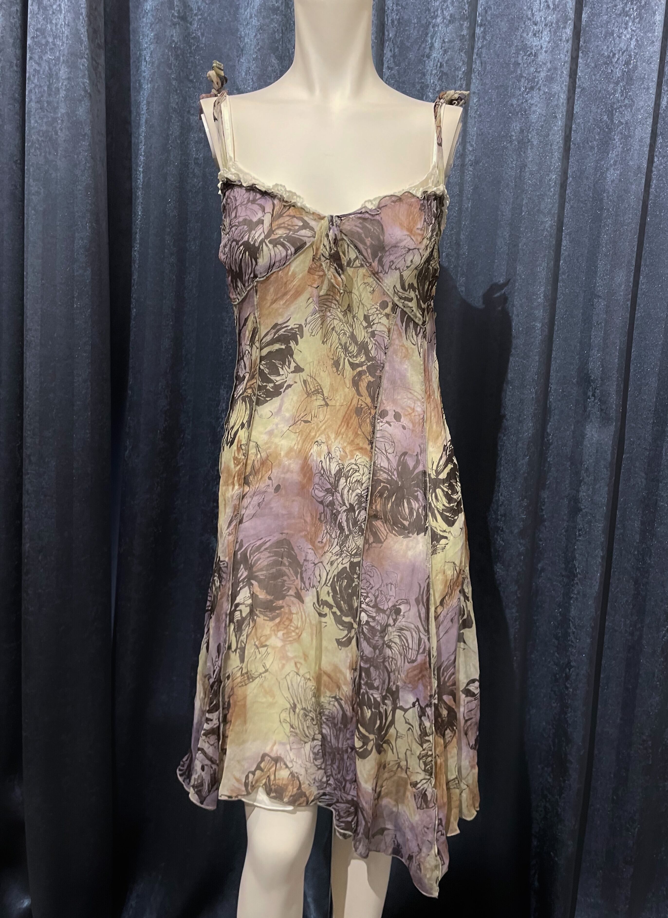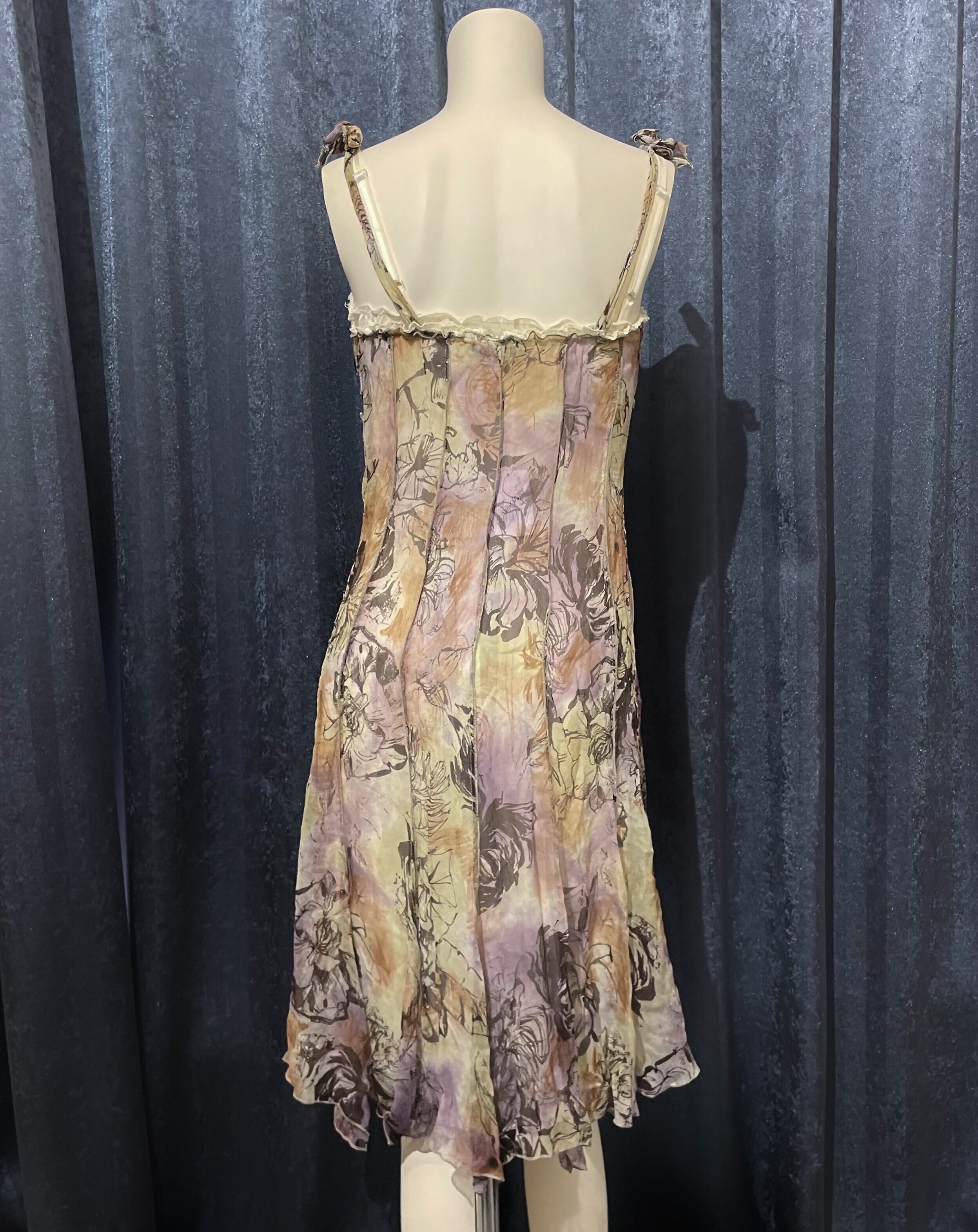 [Italy] Double Layer Sheer Floral Asymmetric Dress <Silk100>