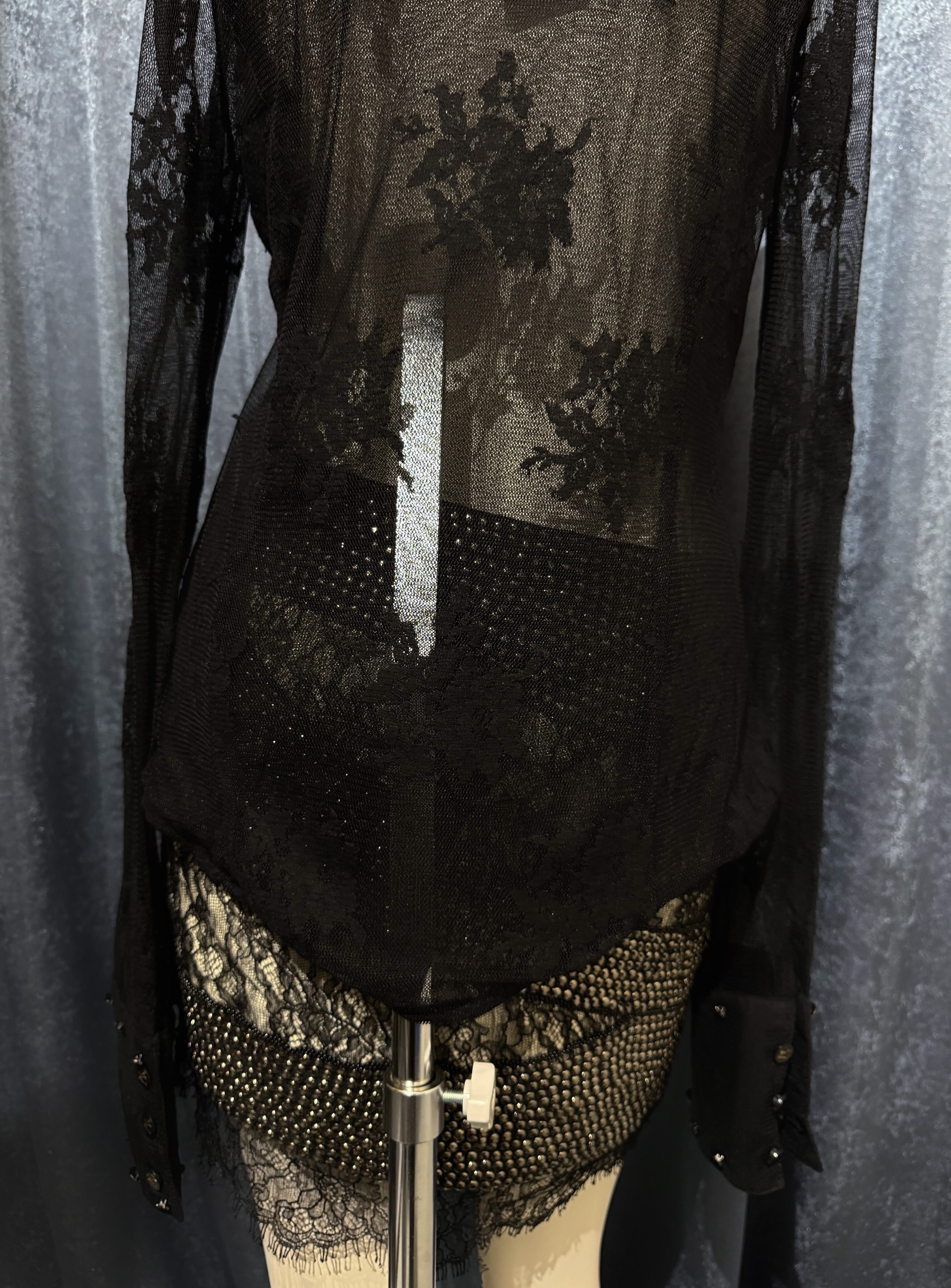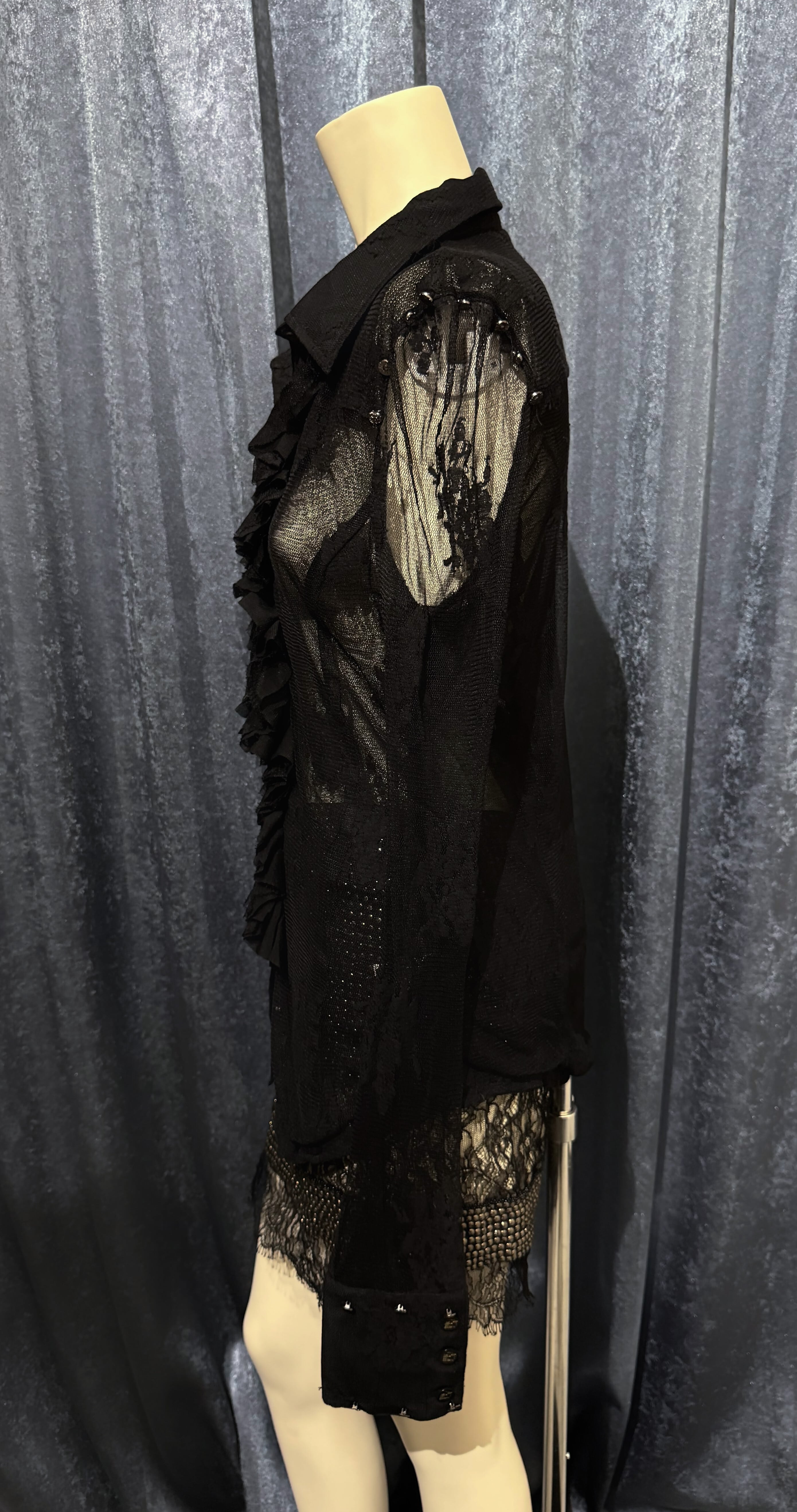 Sheer Frill Shirt with Decorative Buttons