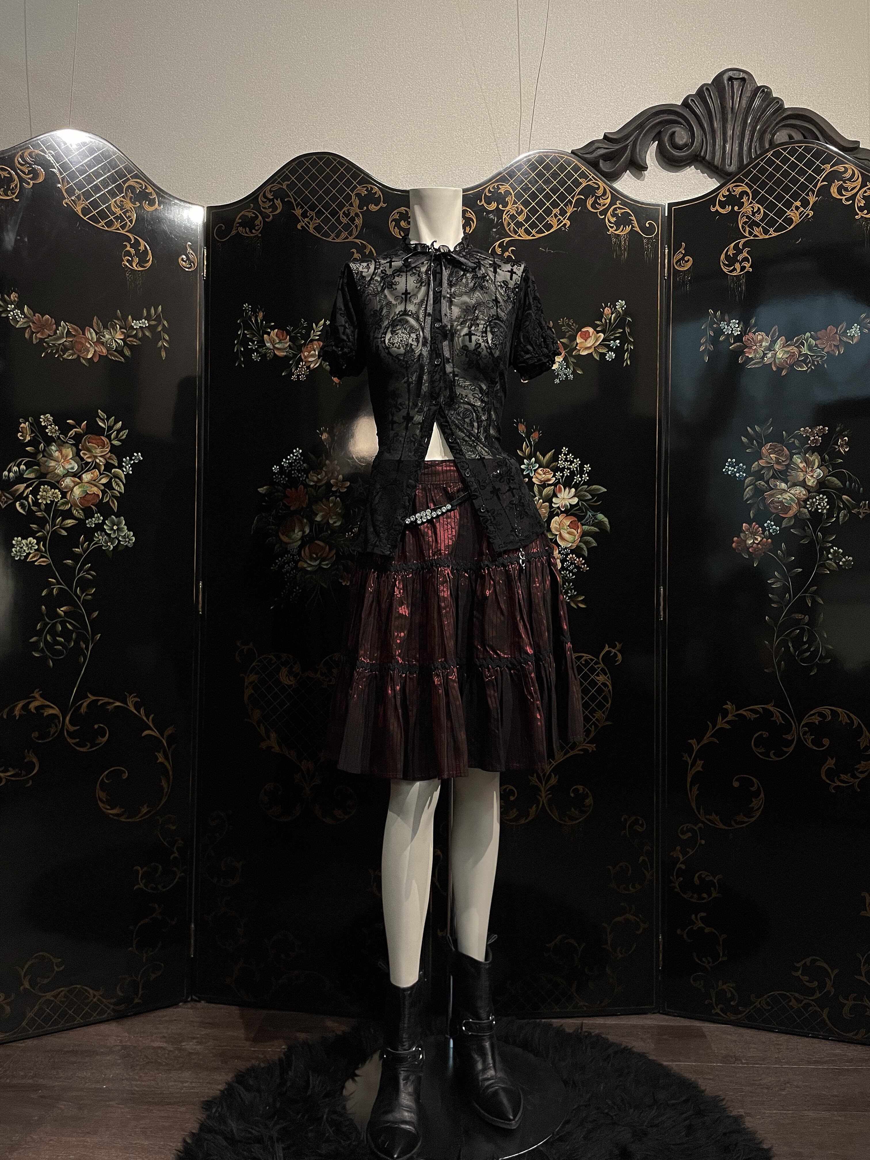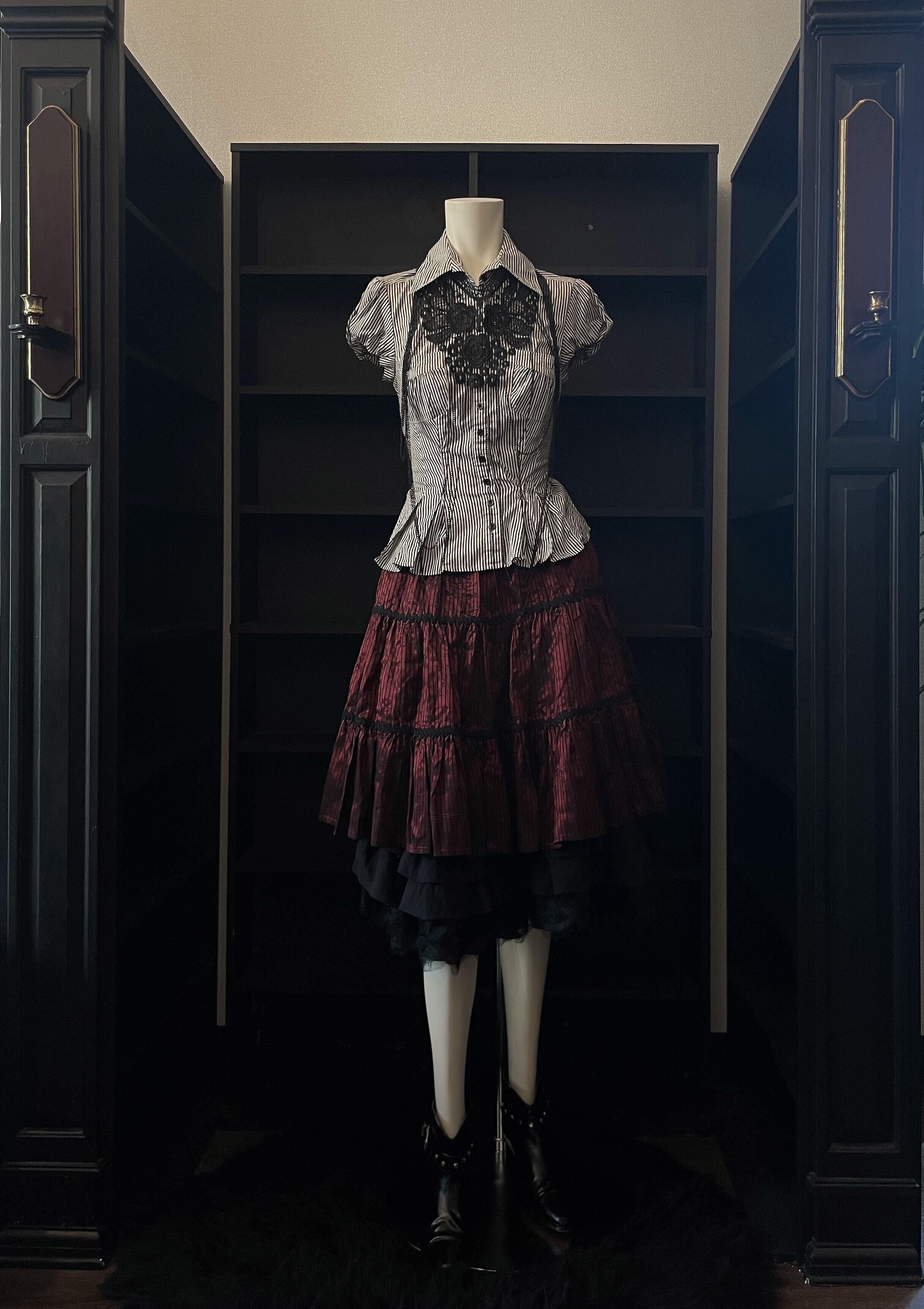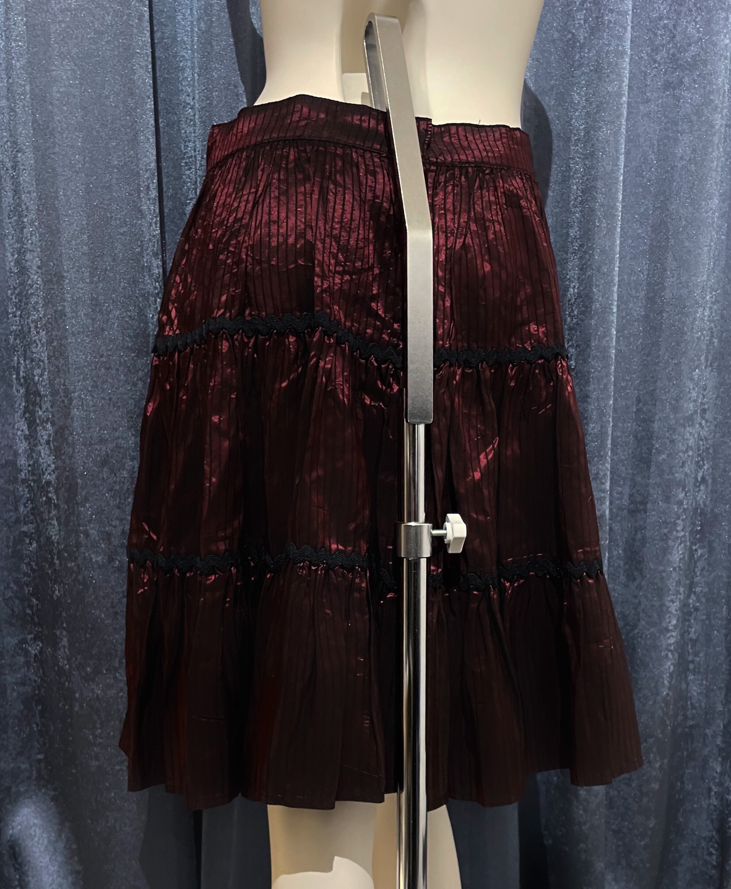 Shiny Burgundy Stripe Skirt with Wavy Accents
