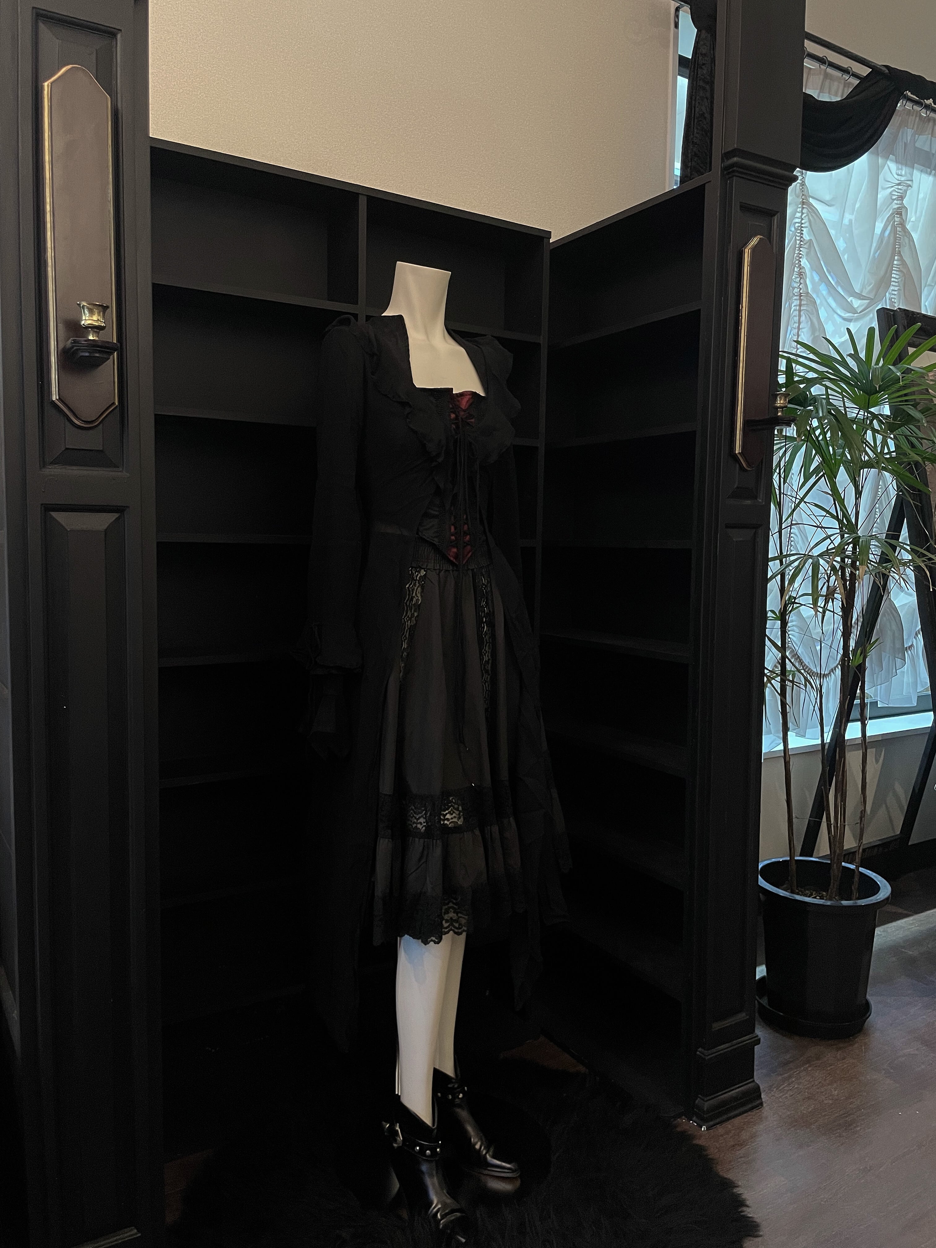 [U.S.A] Gothic Corset Lace-Up Frilled Crop Top