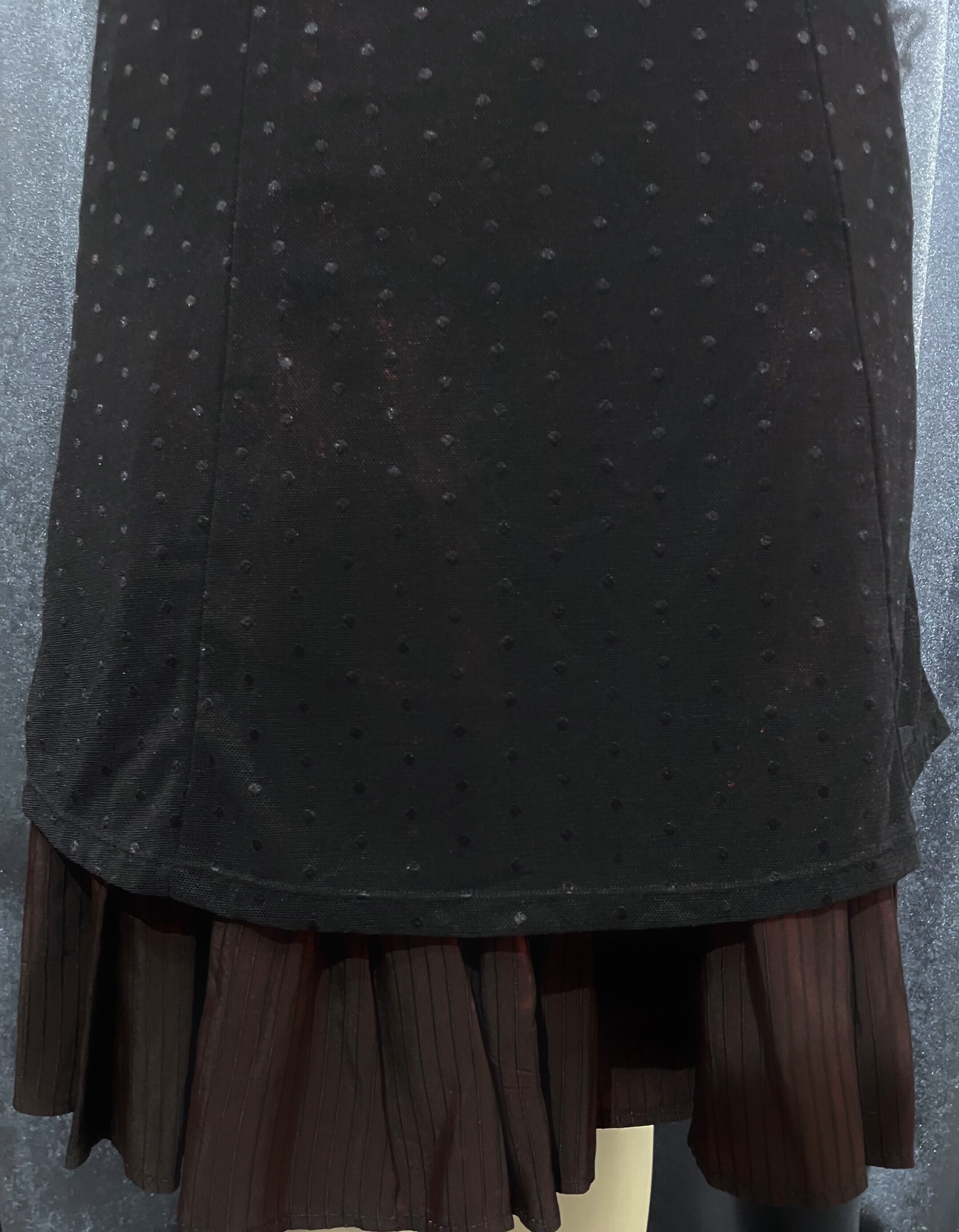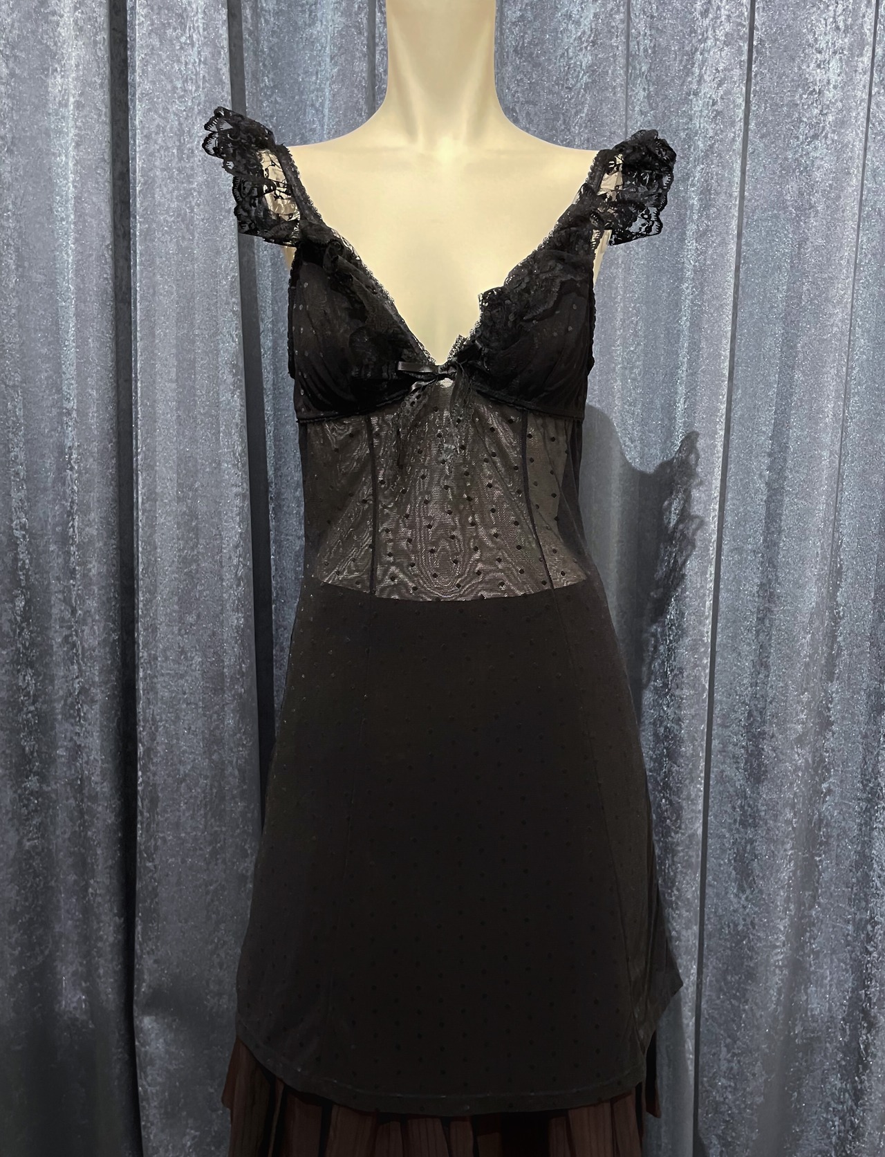 Black Sheer Polka Dot Dress with Lace Shirred Sleeves