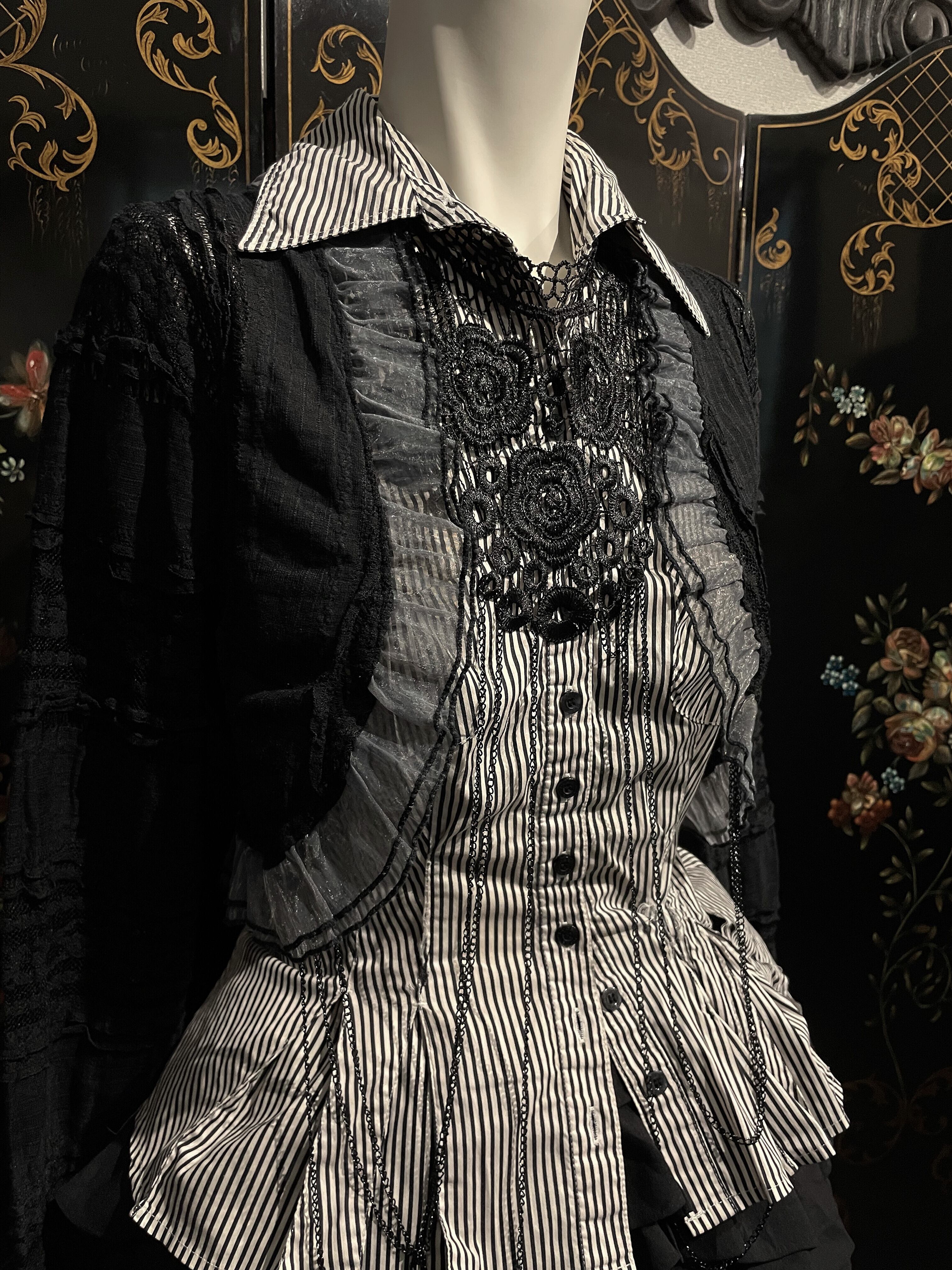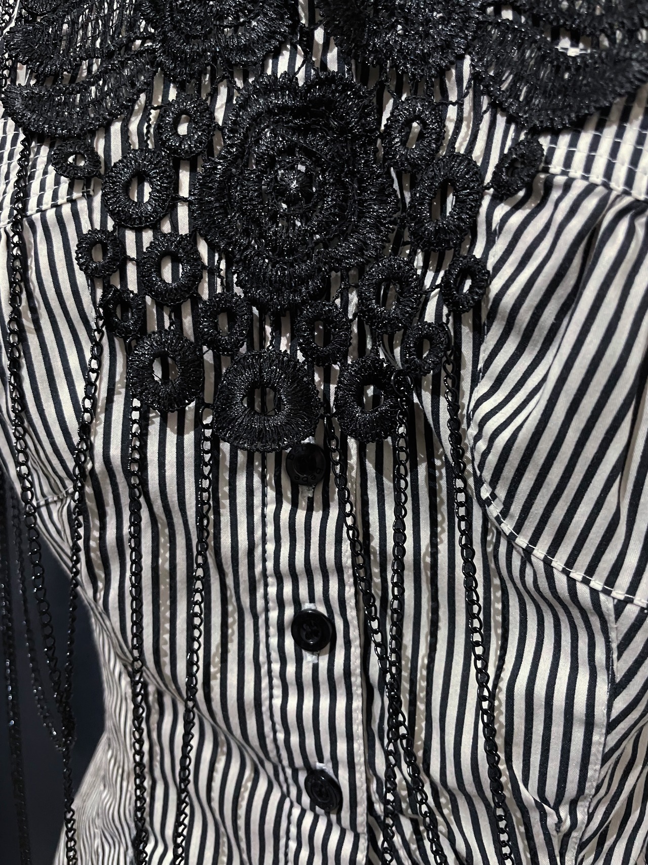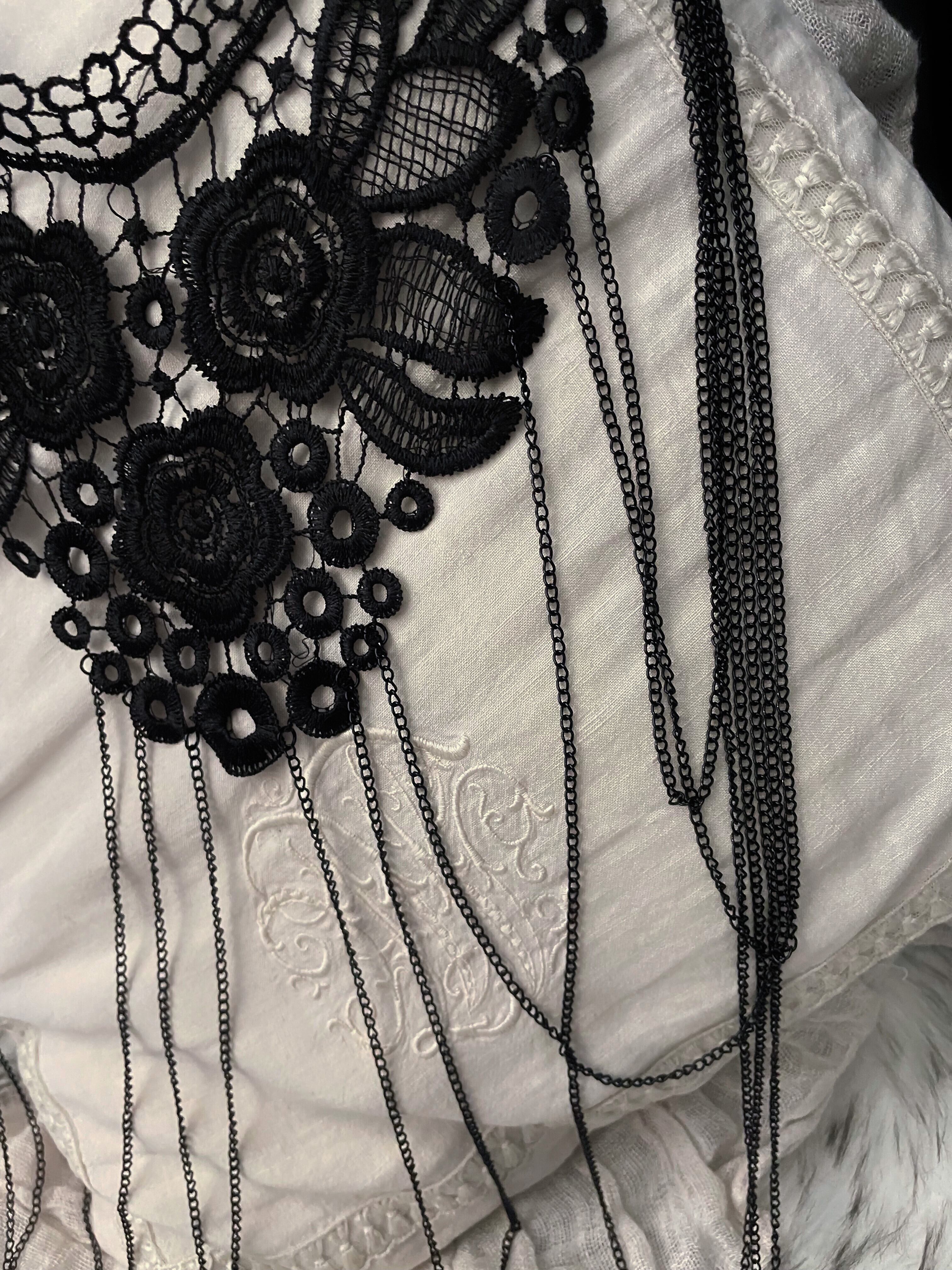 Black Lace Rose Collar with Chain Detail