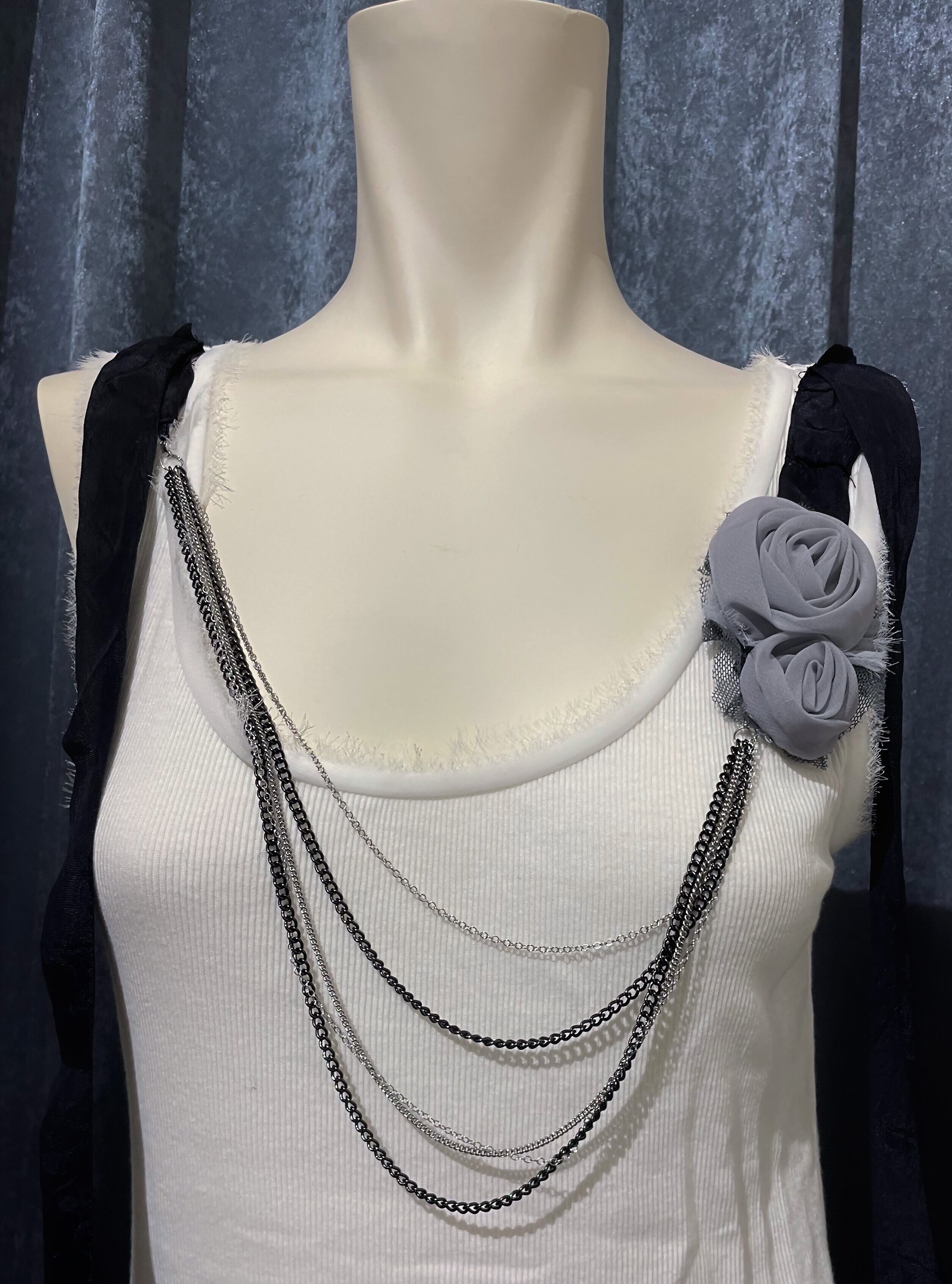 Chain Draped Straps Embellished Tank Top<Cotton100>