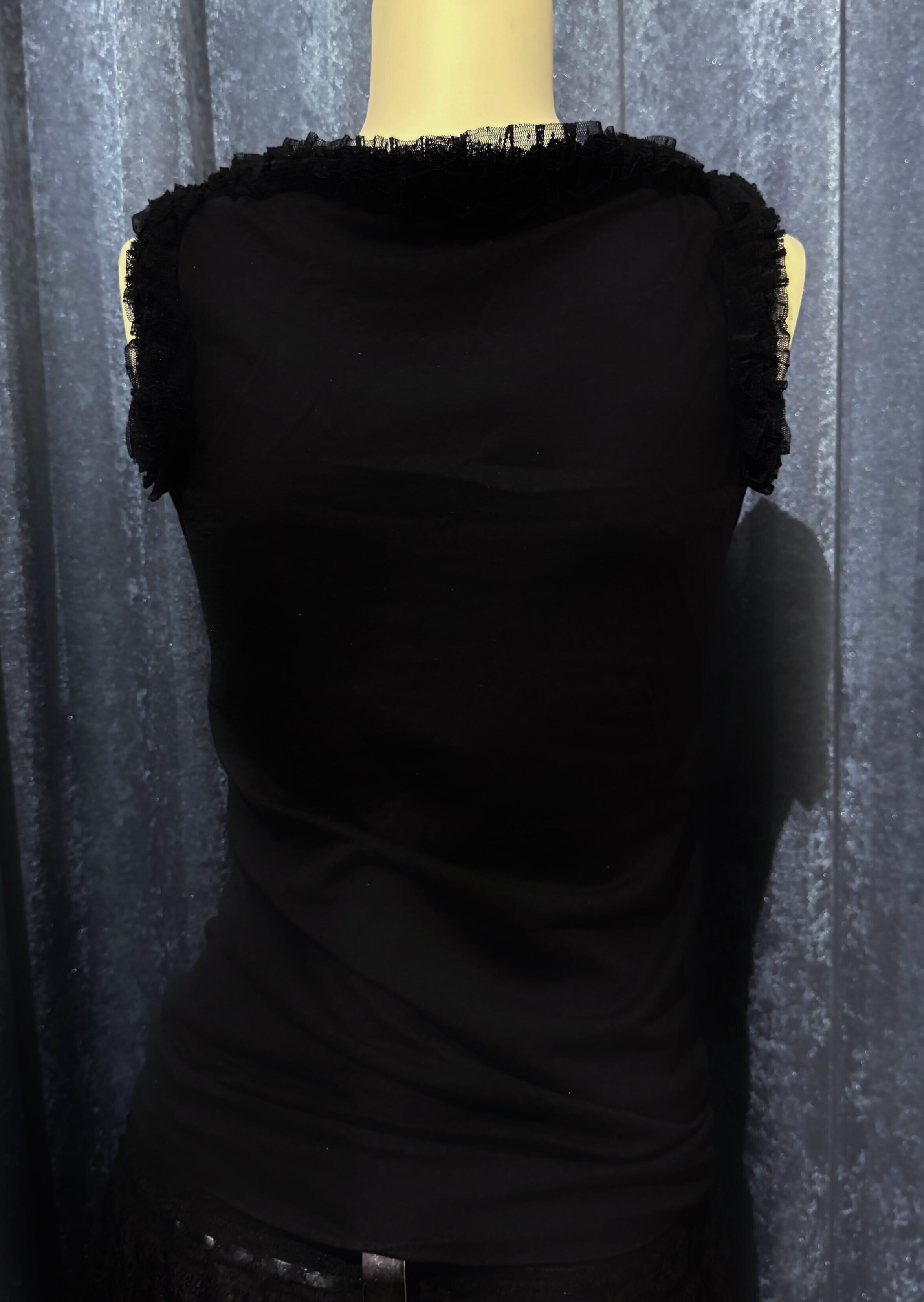 Ruffled Edge with Velvet Bow Detail Tank Top