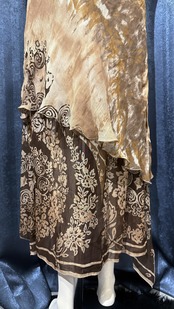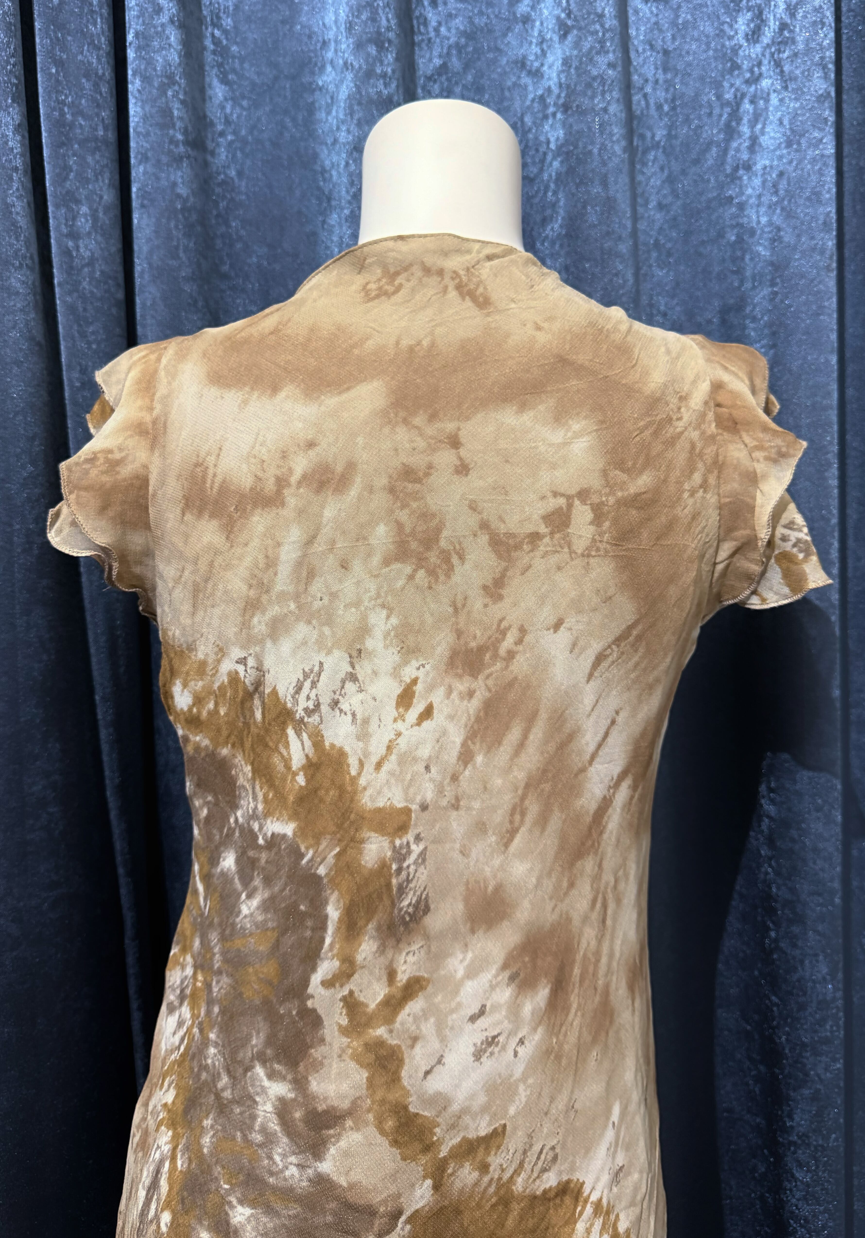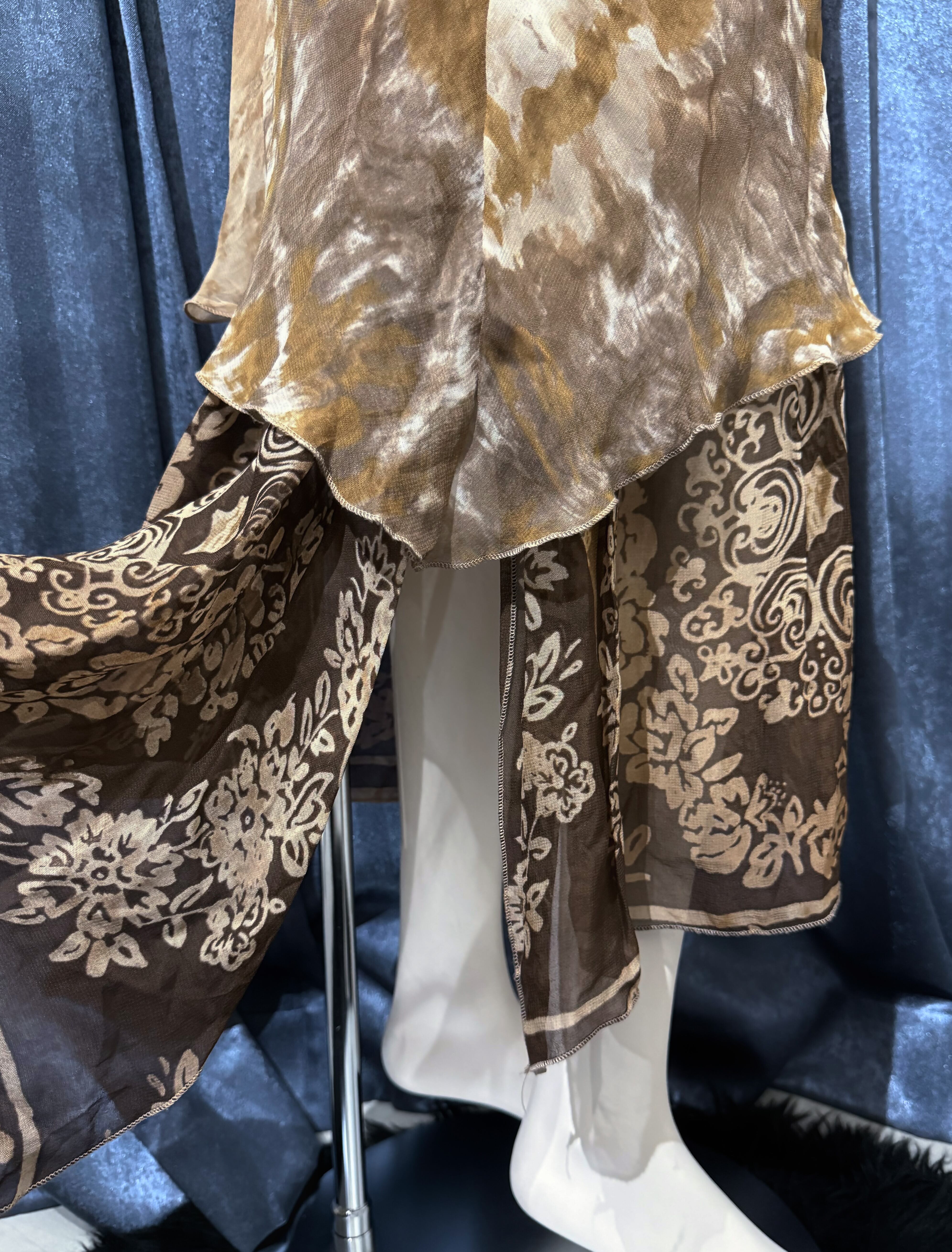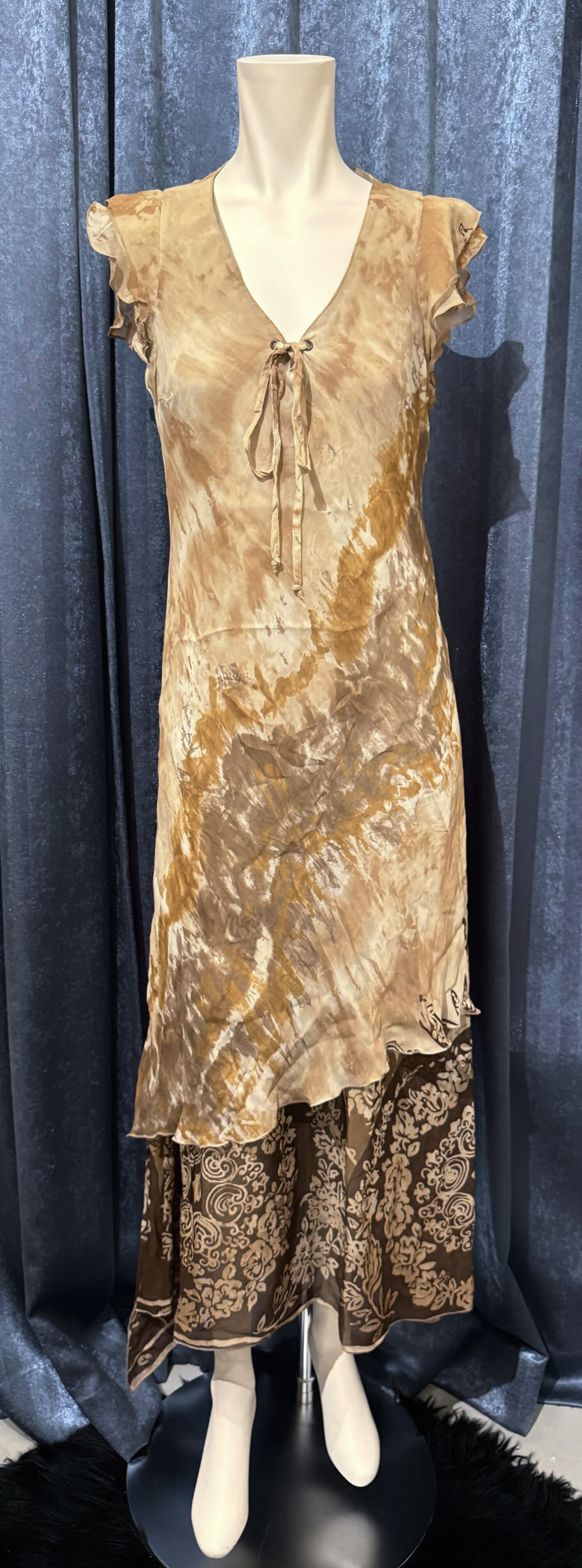 [Italy] Layered Botanical Hem Brown Tie-Dye Lace-Up Dress