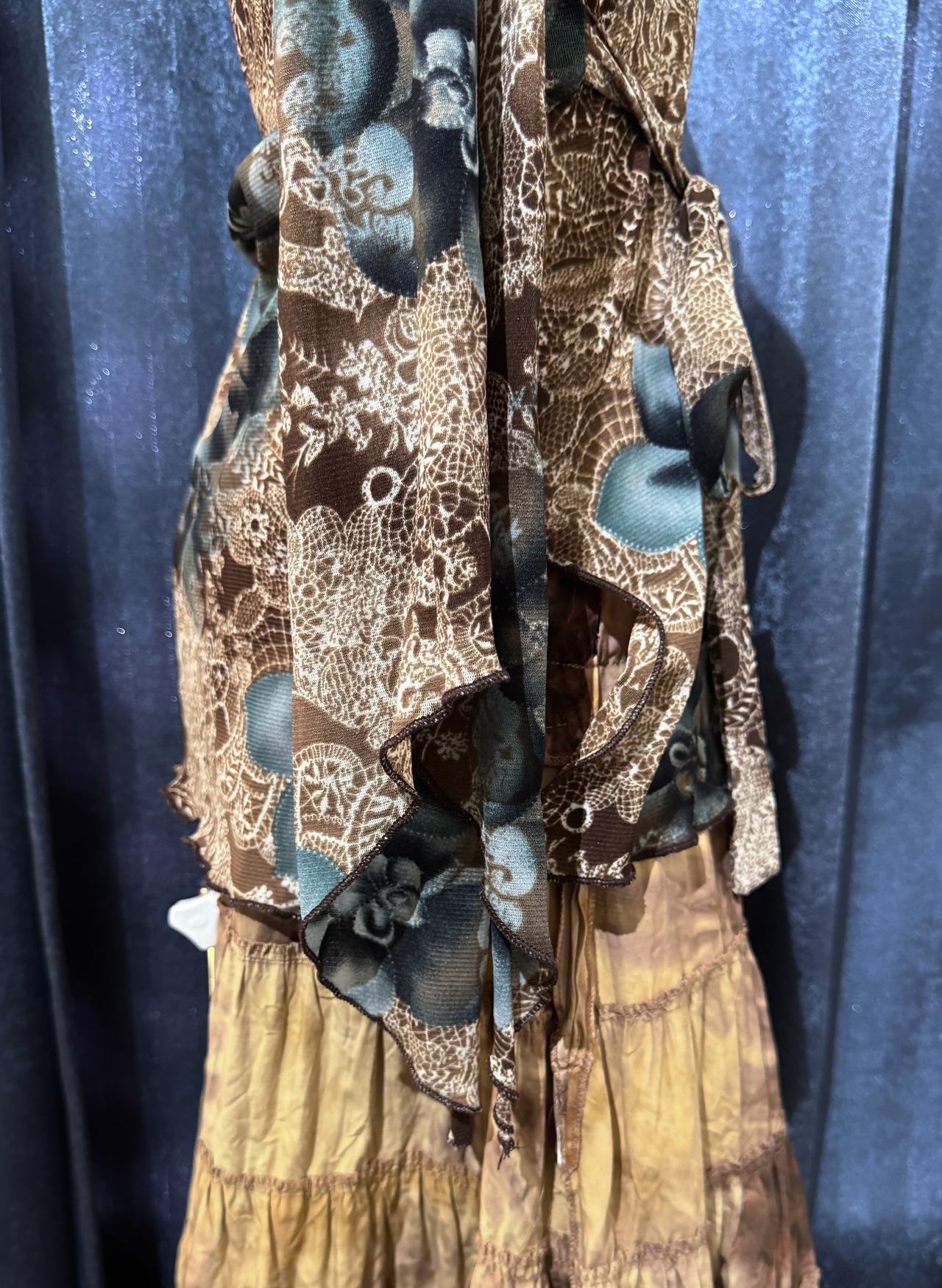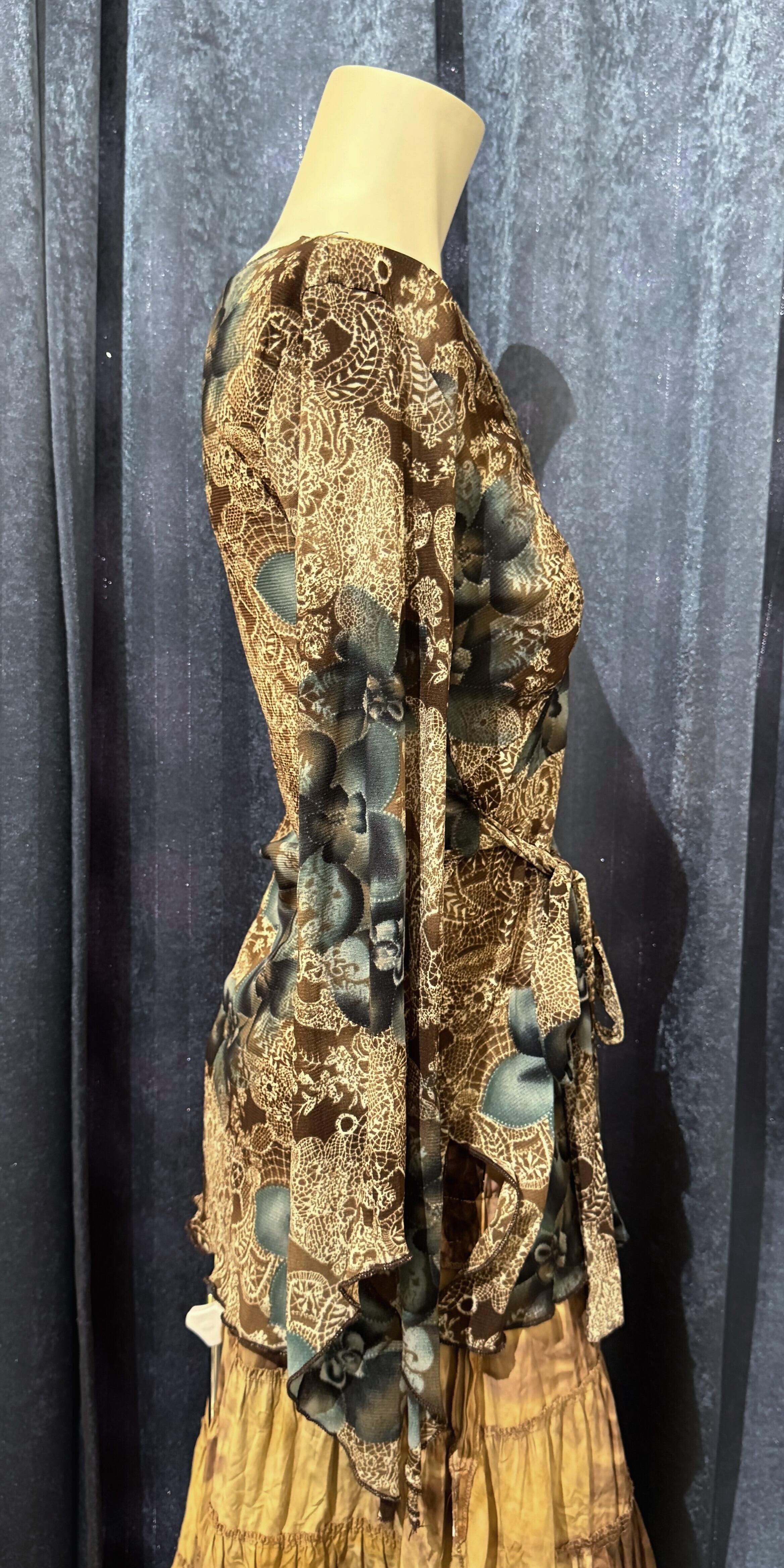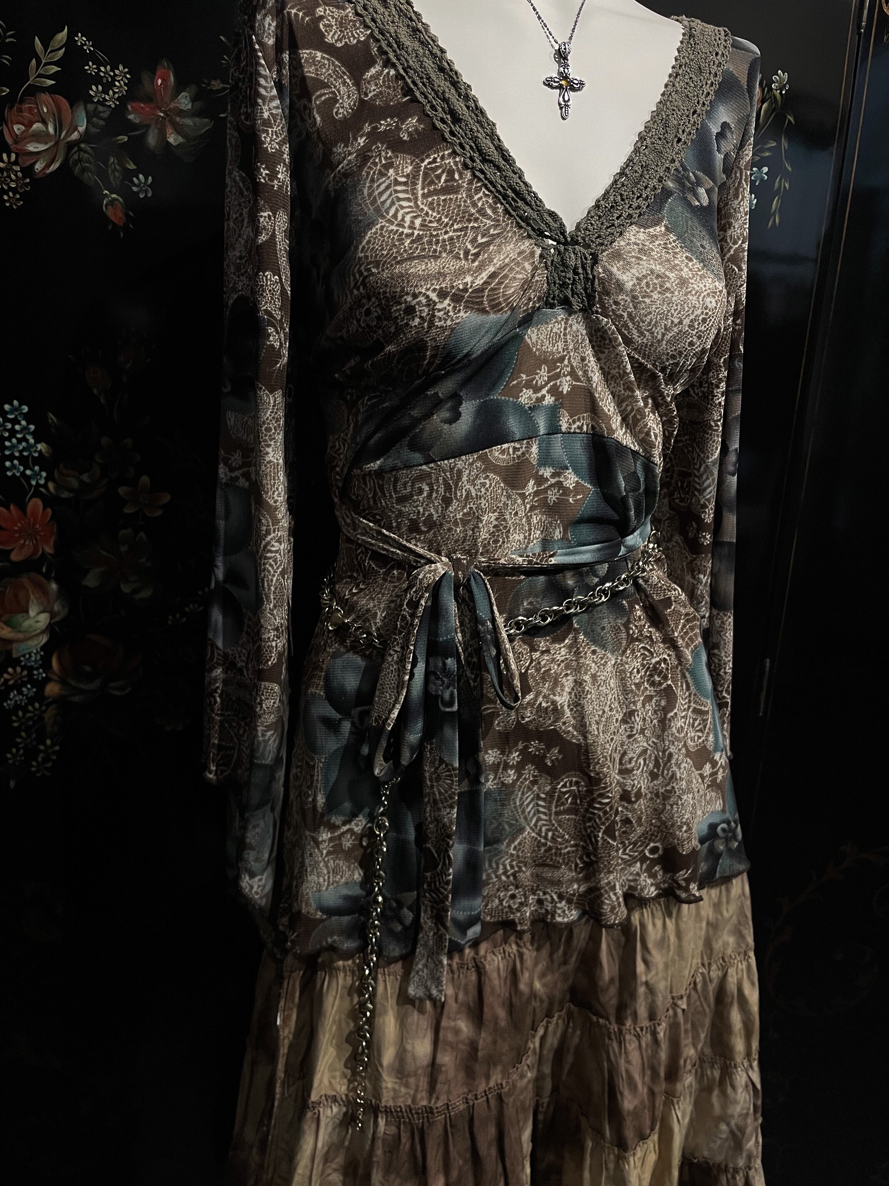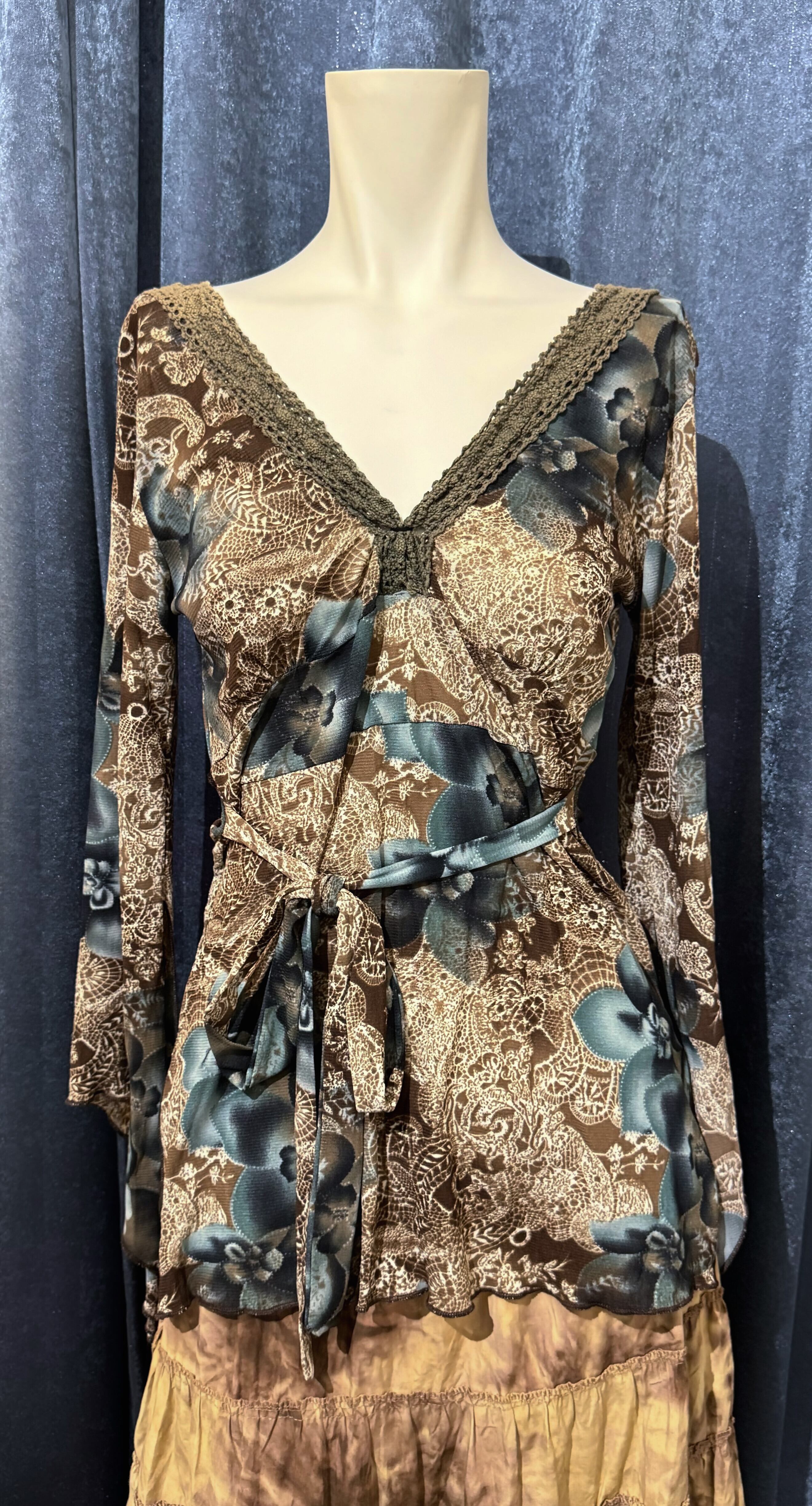 Flared Sleeves Embroidered Collar Paisley Floral Top