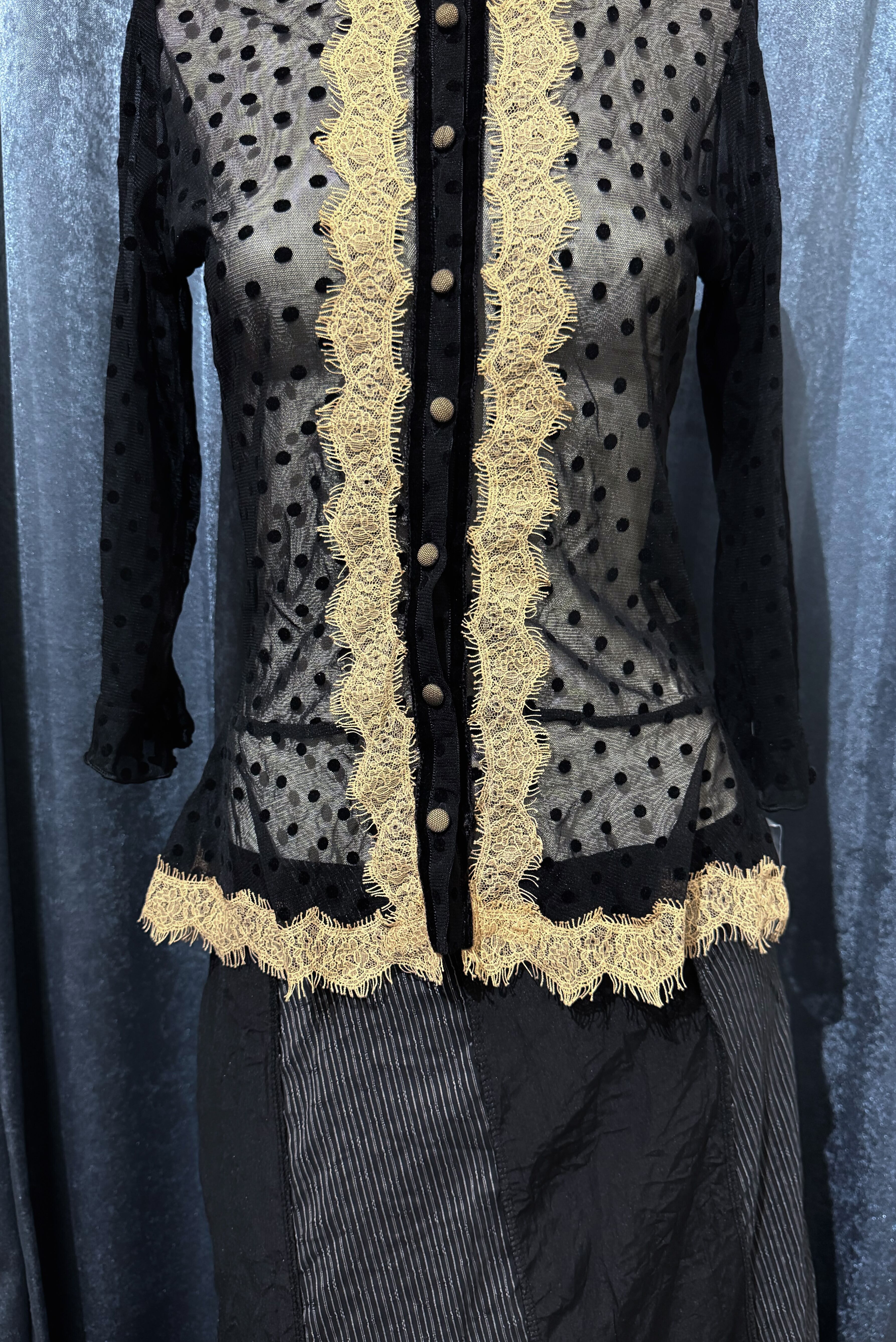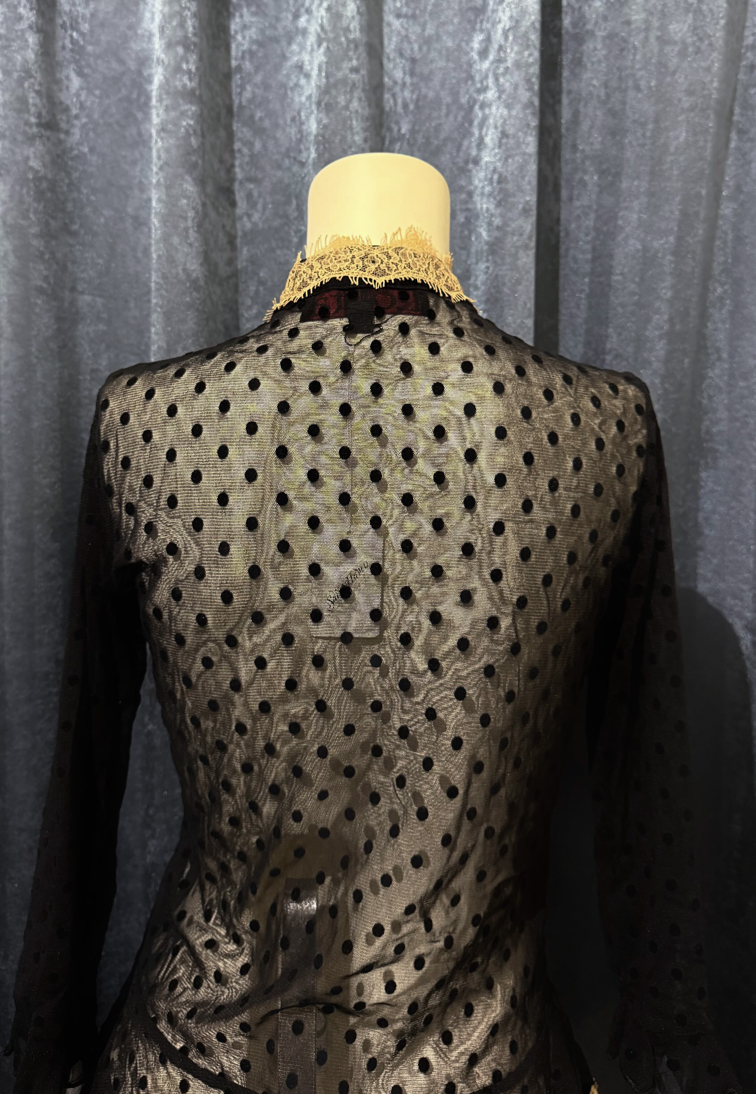 [Australia] Flared Sheer Dot Blouse with Lace Trim