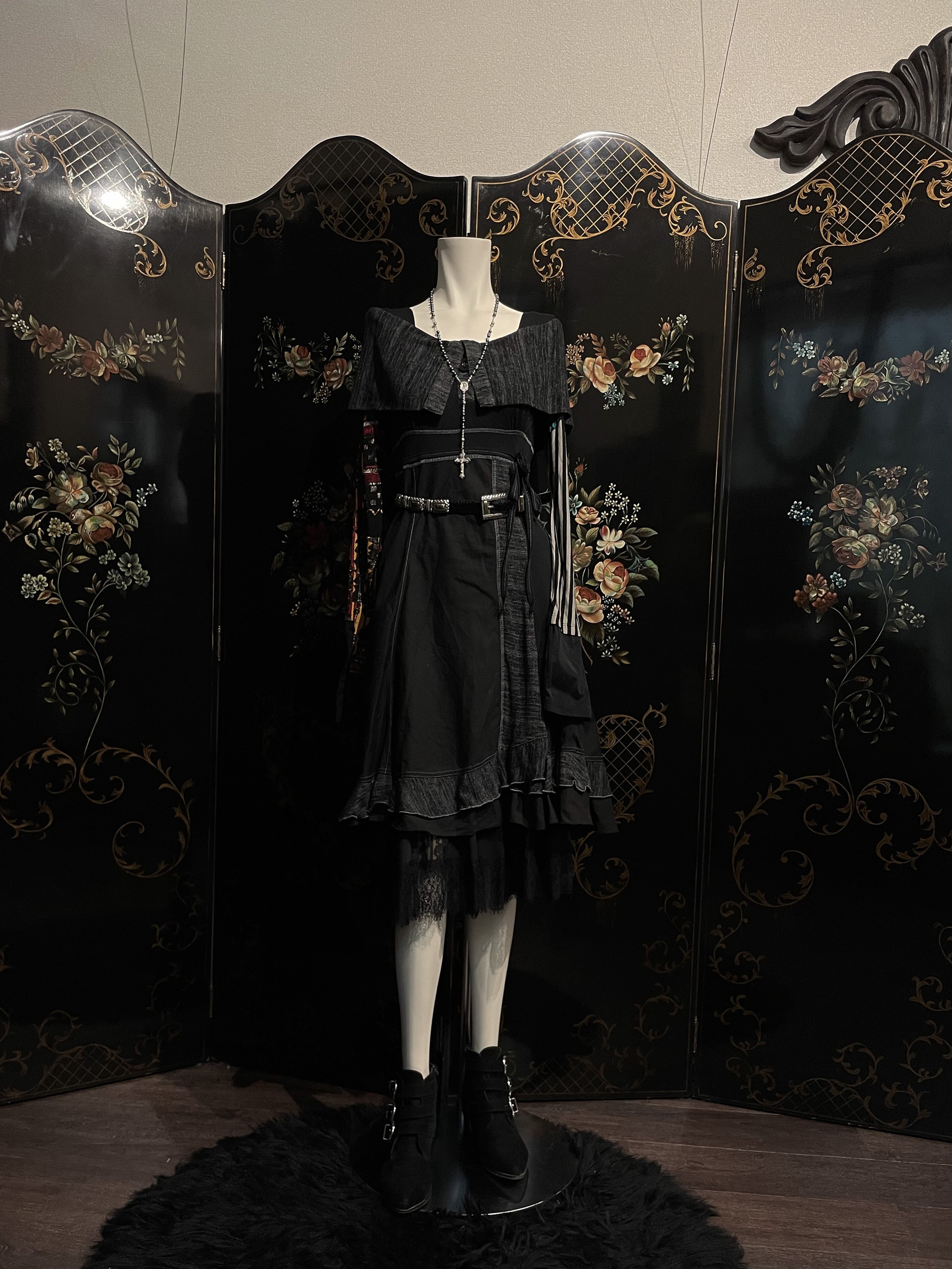 Layered Cape Design Gray Accent Onepiece