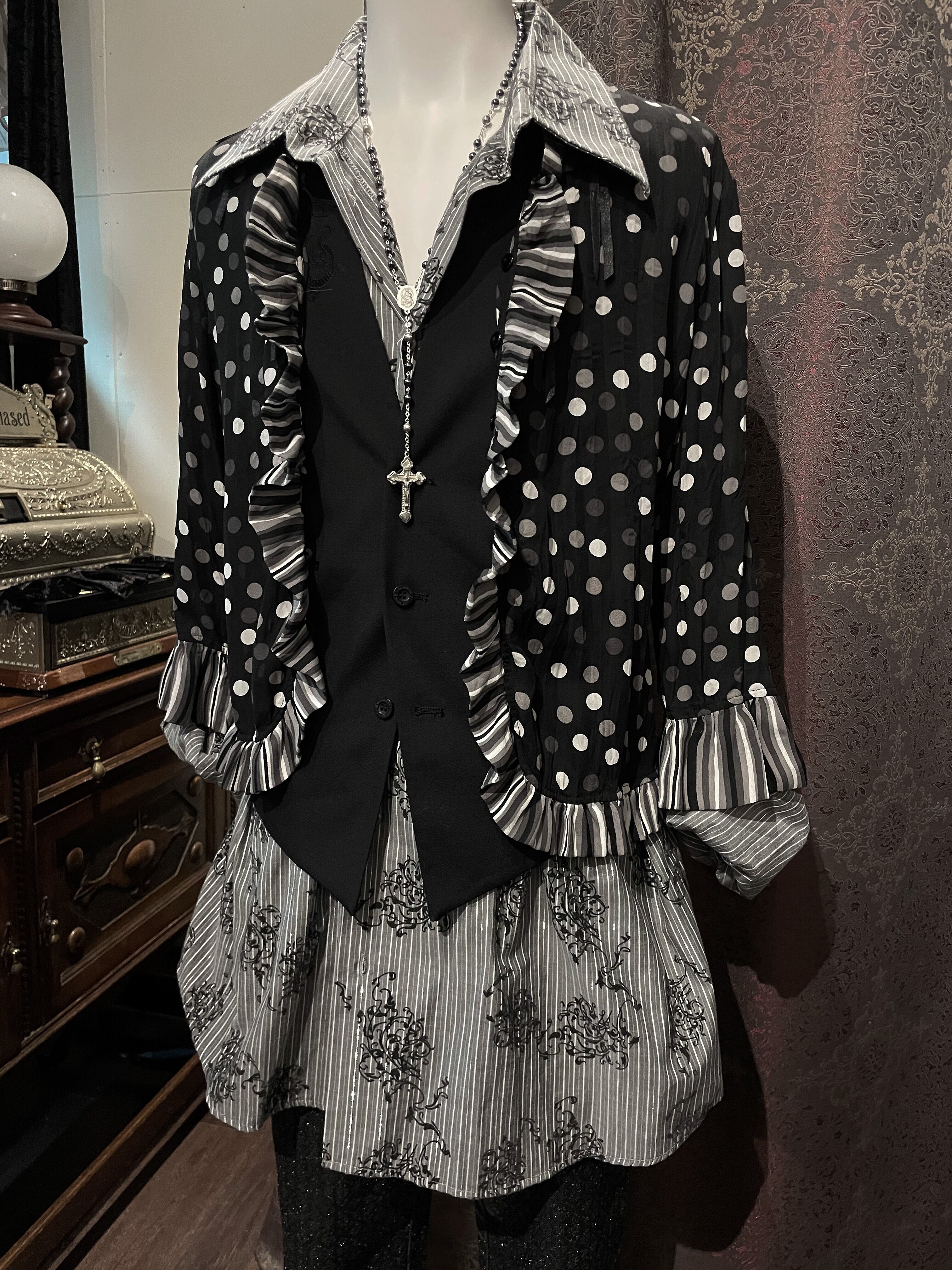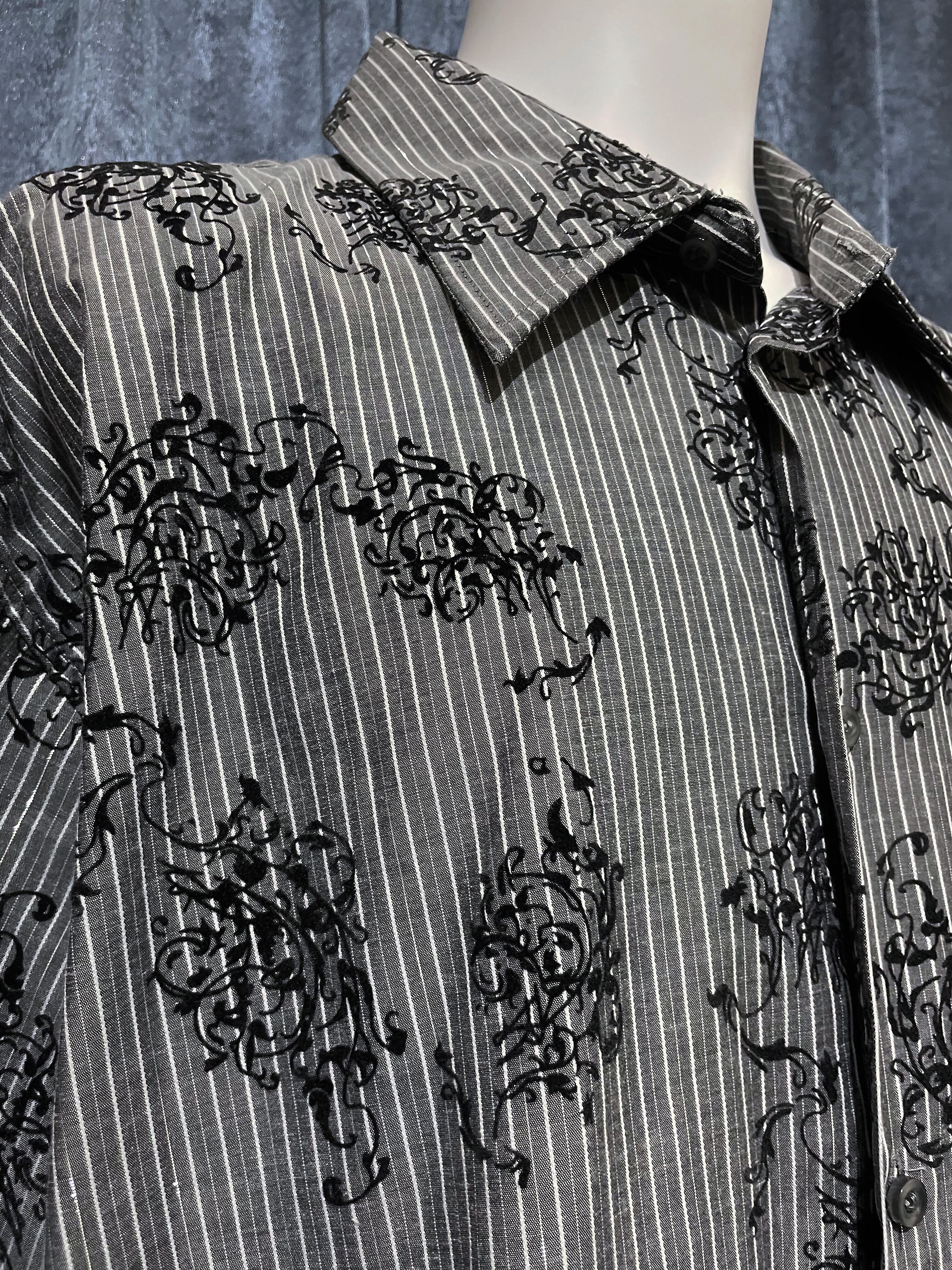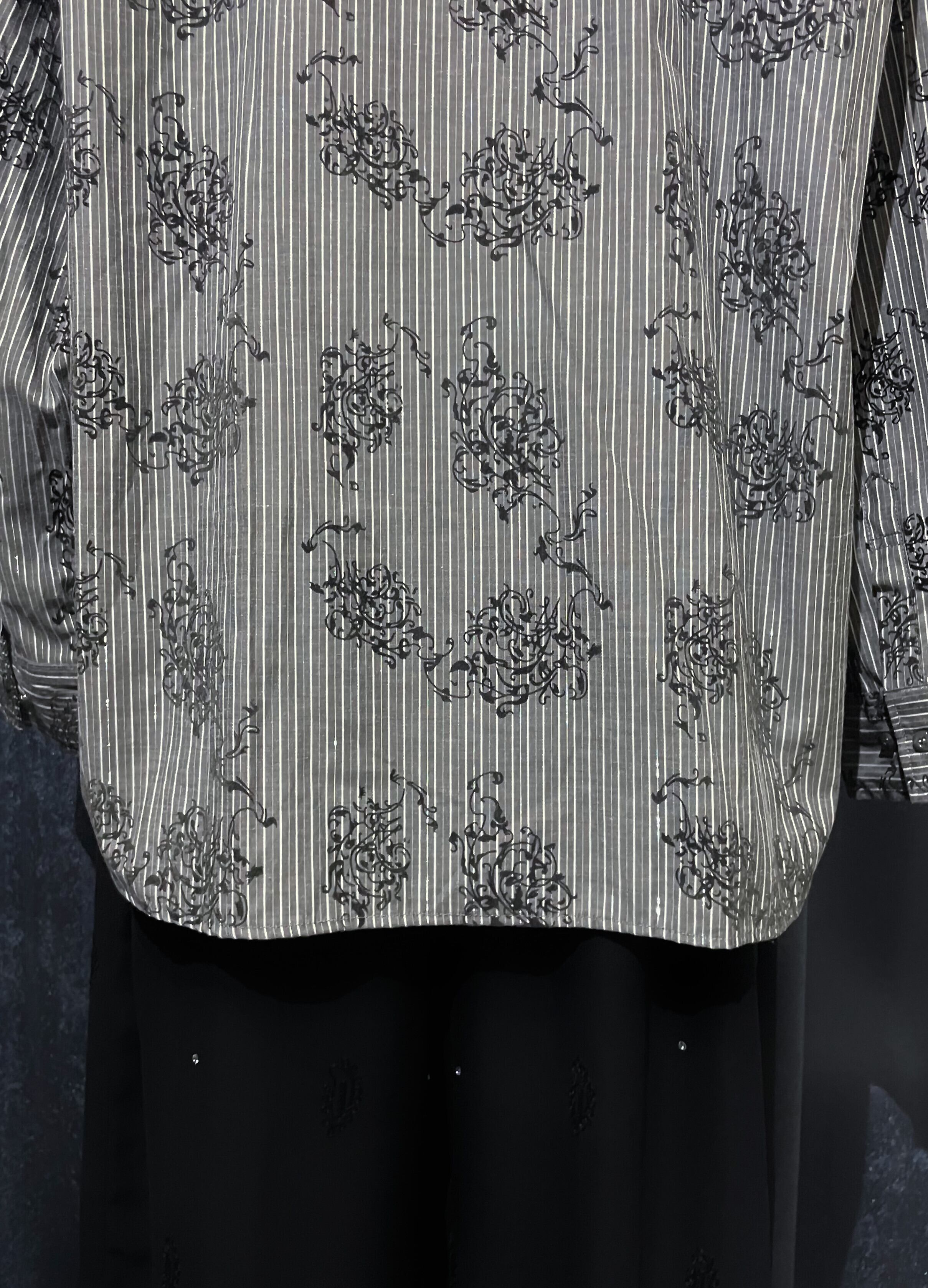 Gray Stripe Leaf Print Shirt
