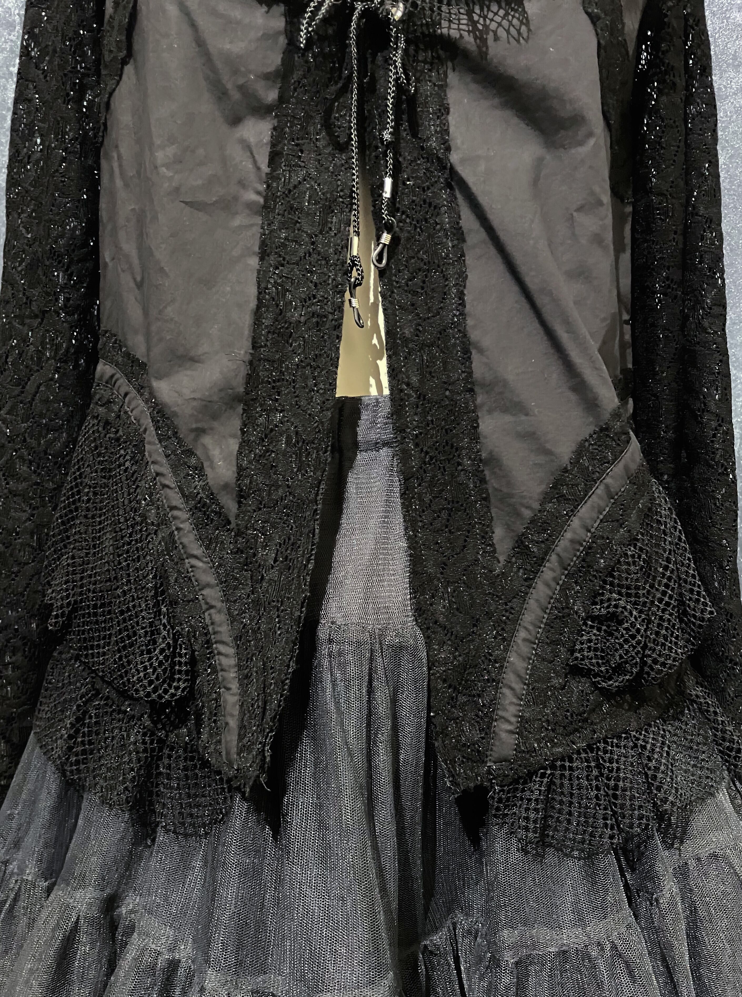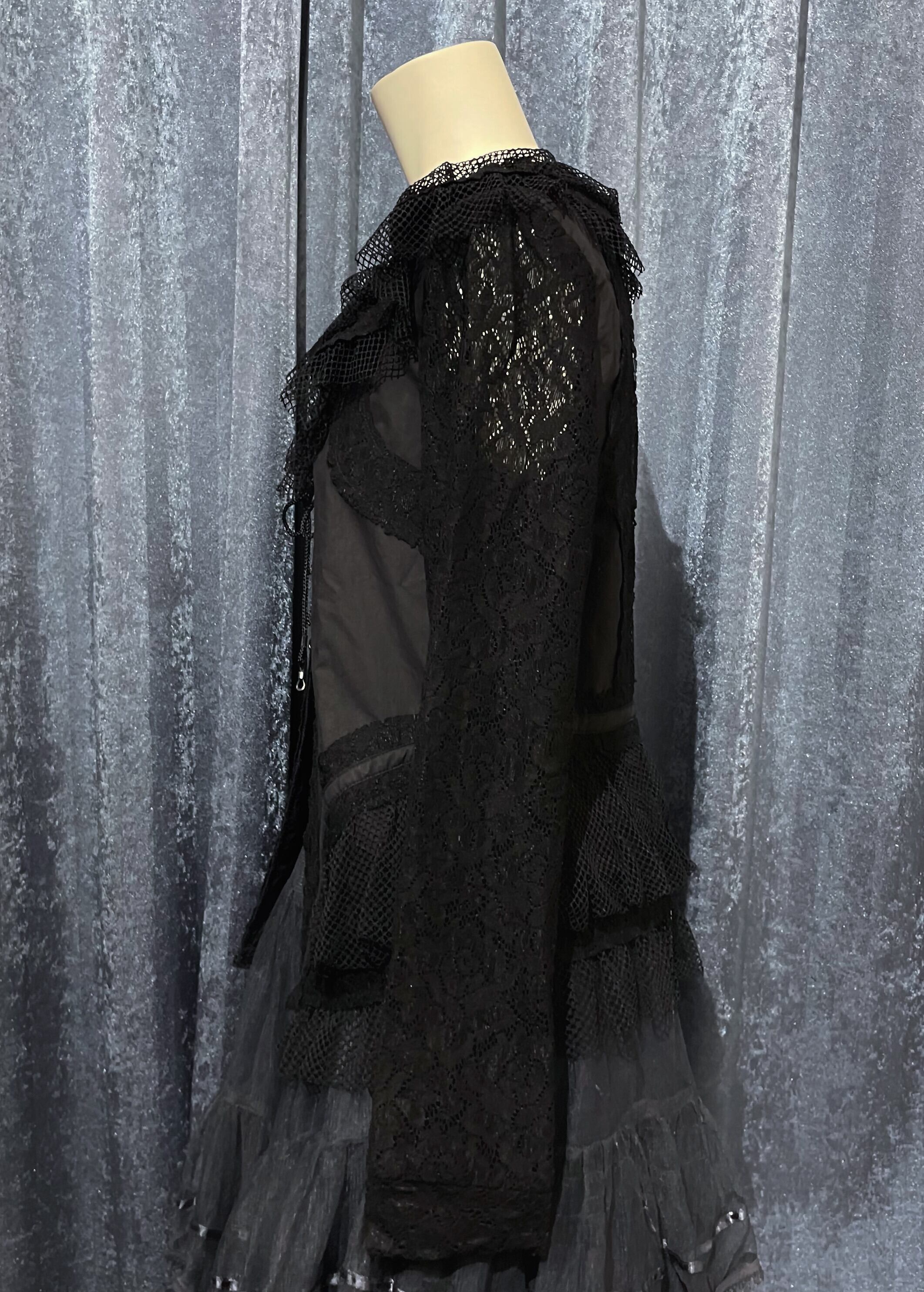 [Italy] Mesh Collar and Hem Jacket with Lace Sleeves
