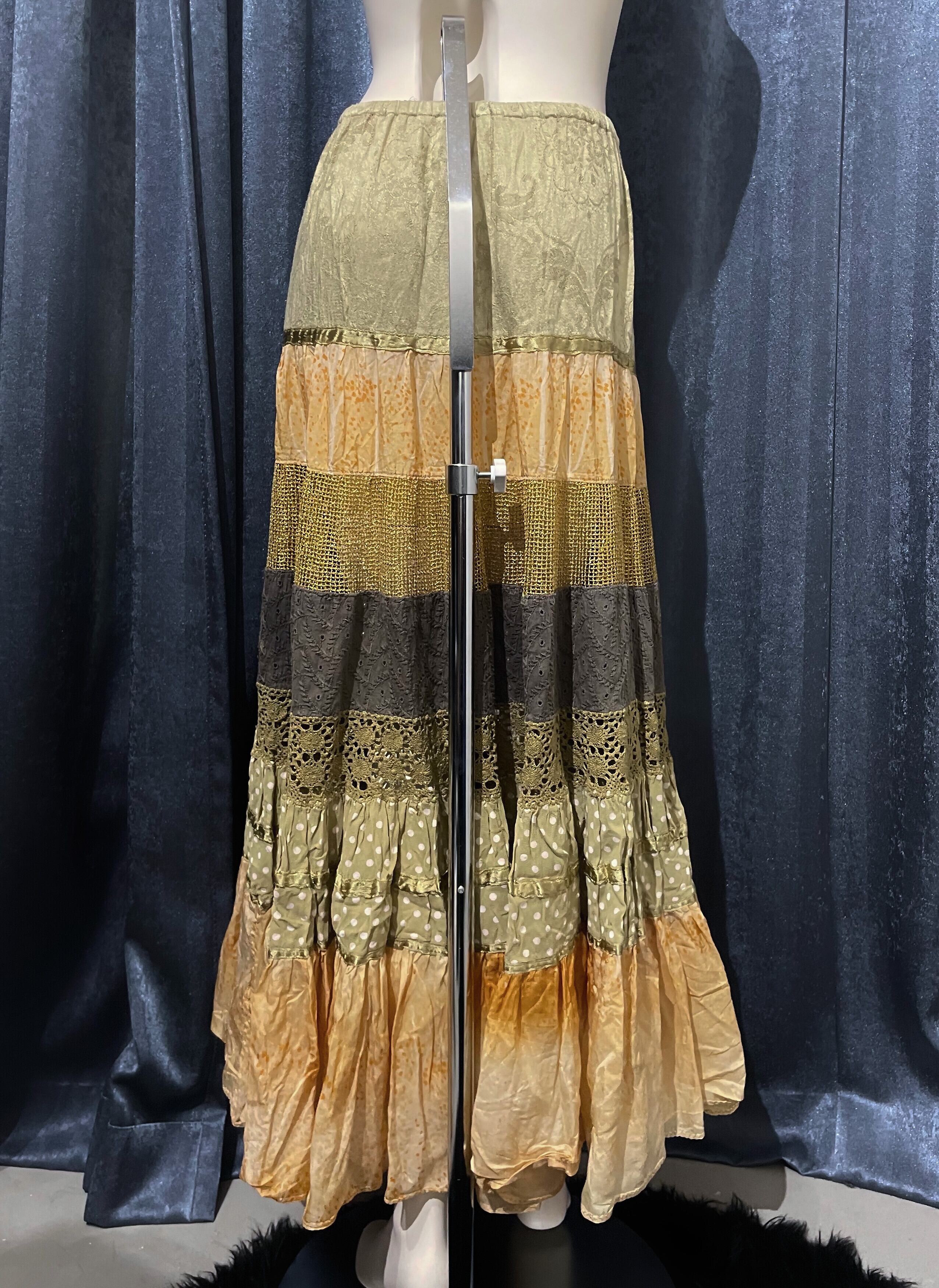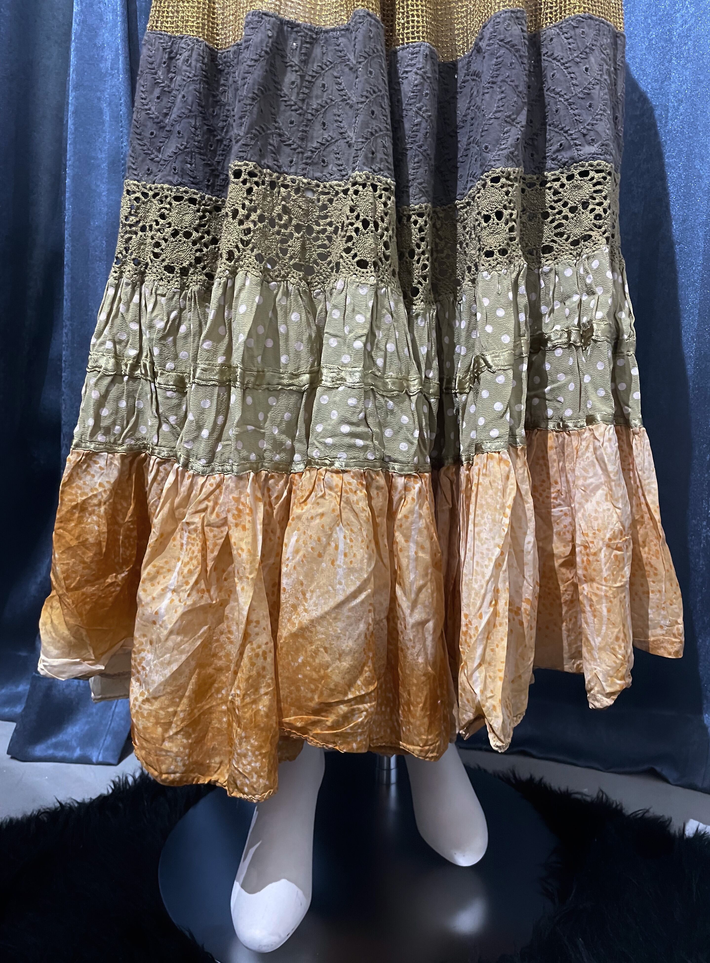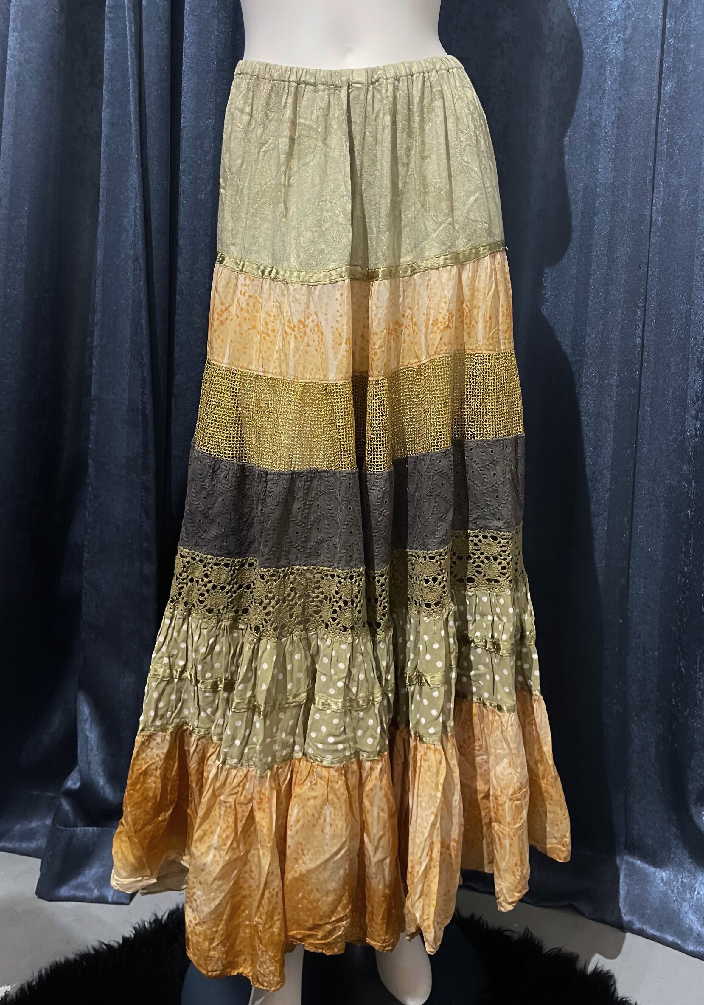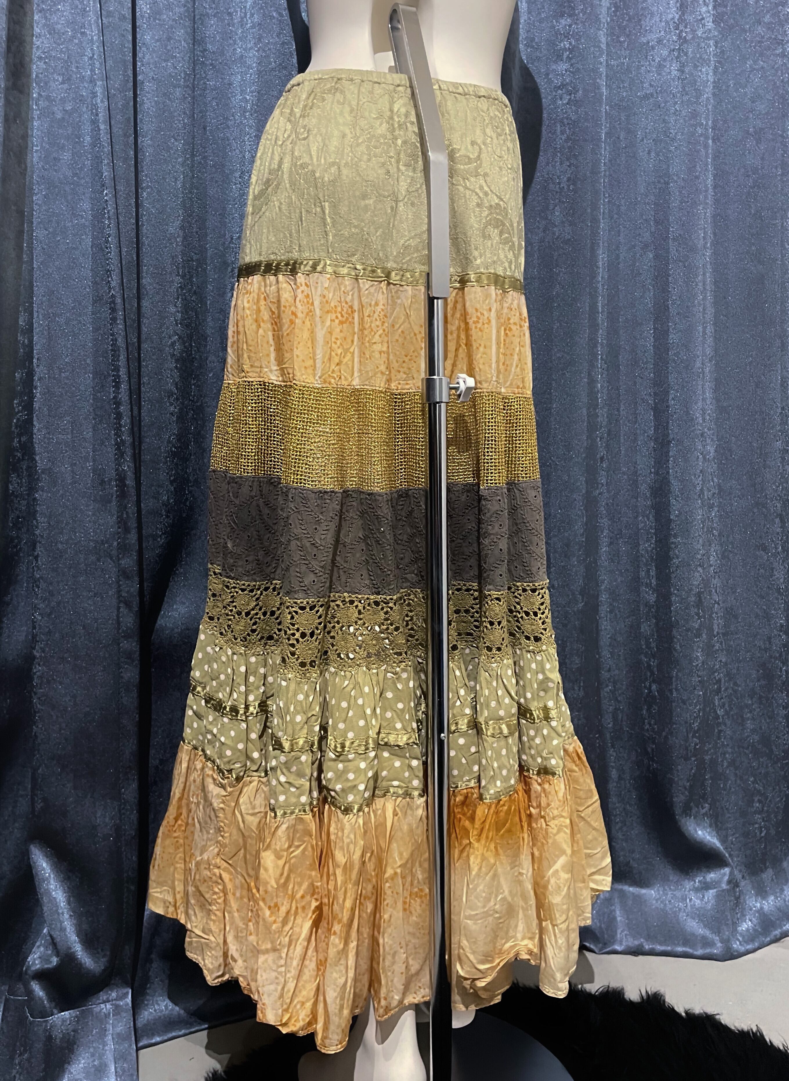 Vertically Mixed Fabrics and Patterns Long Skirt