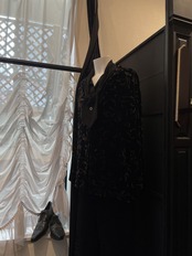 Gold Floral Vine Pattern Navy Velvet Shirt