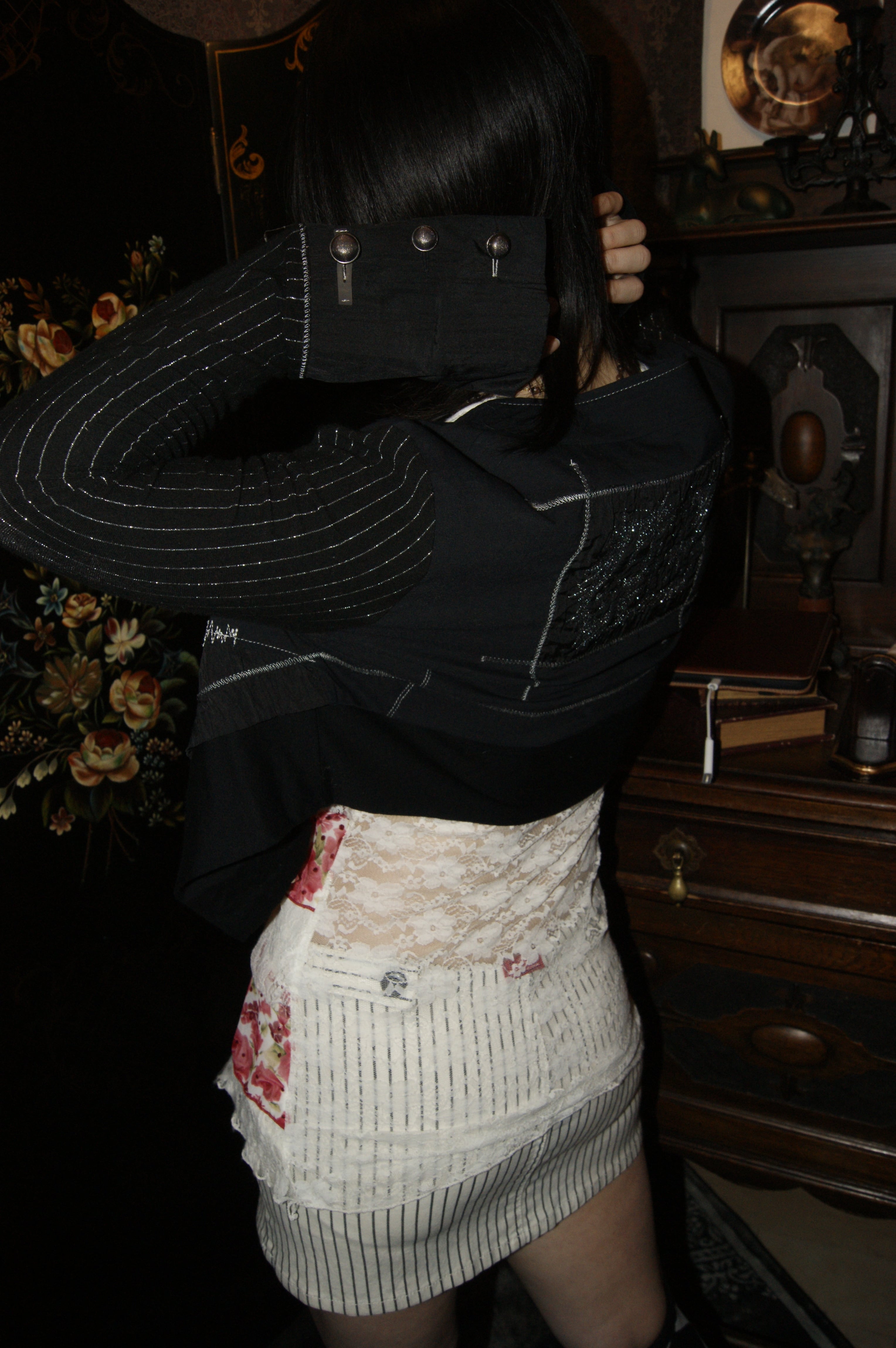 Black Mix Stich Cropped Jacket